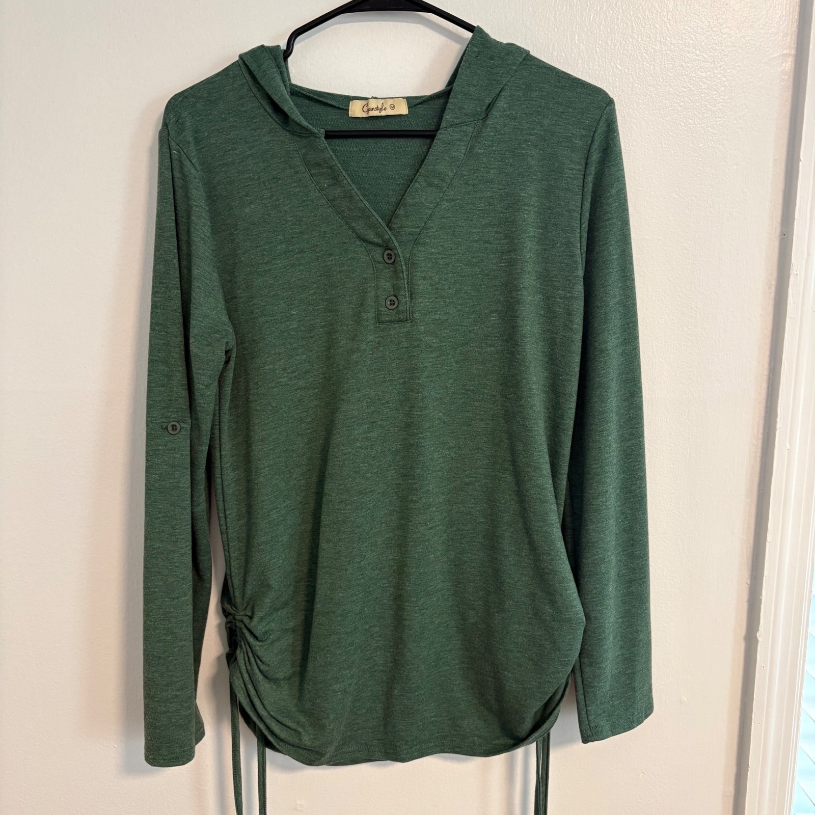 Women's Green Long Sleeve Drawstring Hoodie Size M