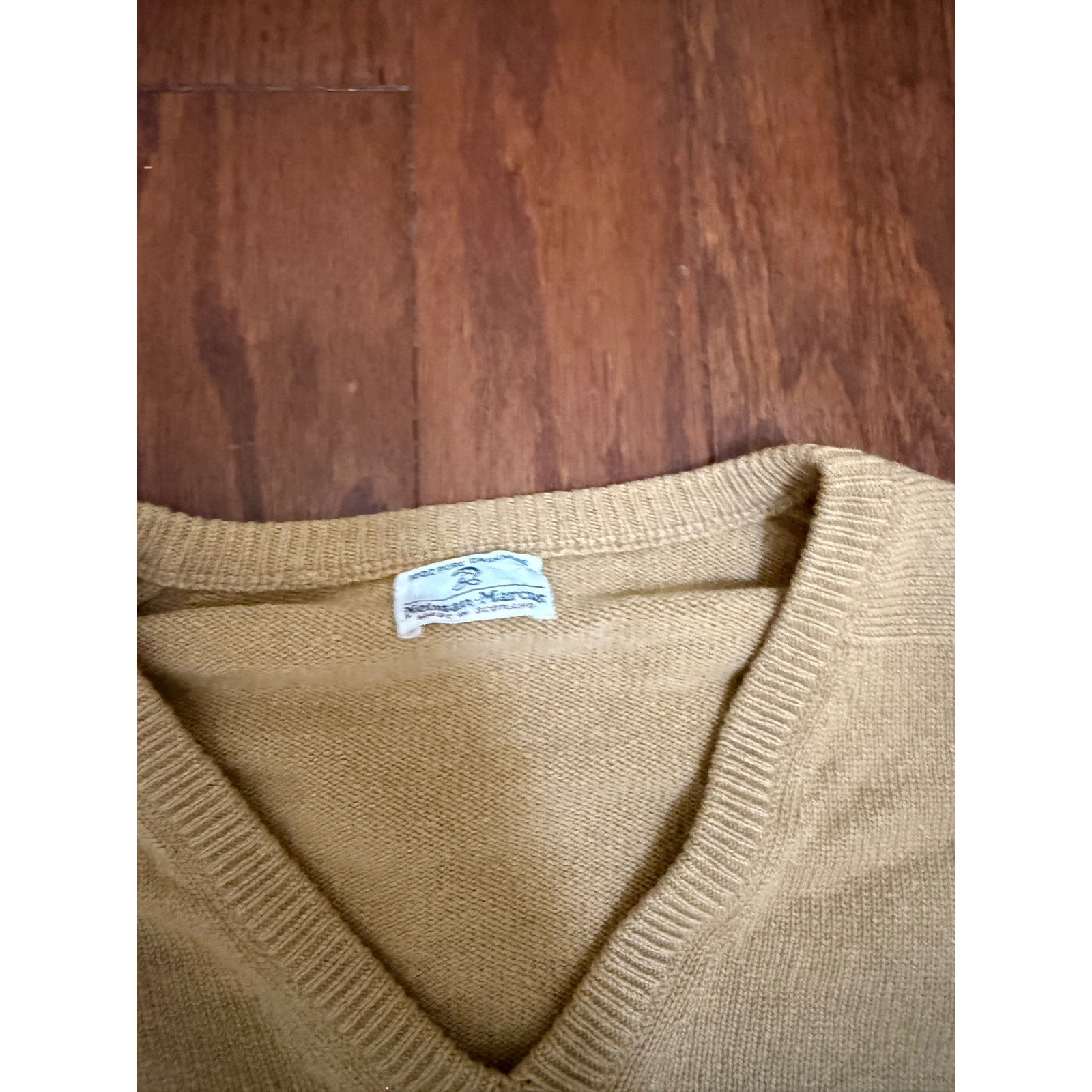 как выглядит Neiman Marcus Mens Tan 100 Cashmere V-Neck Sweater Made in Scotland L vintage фото