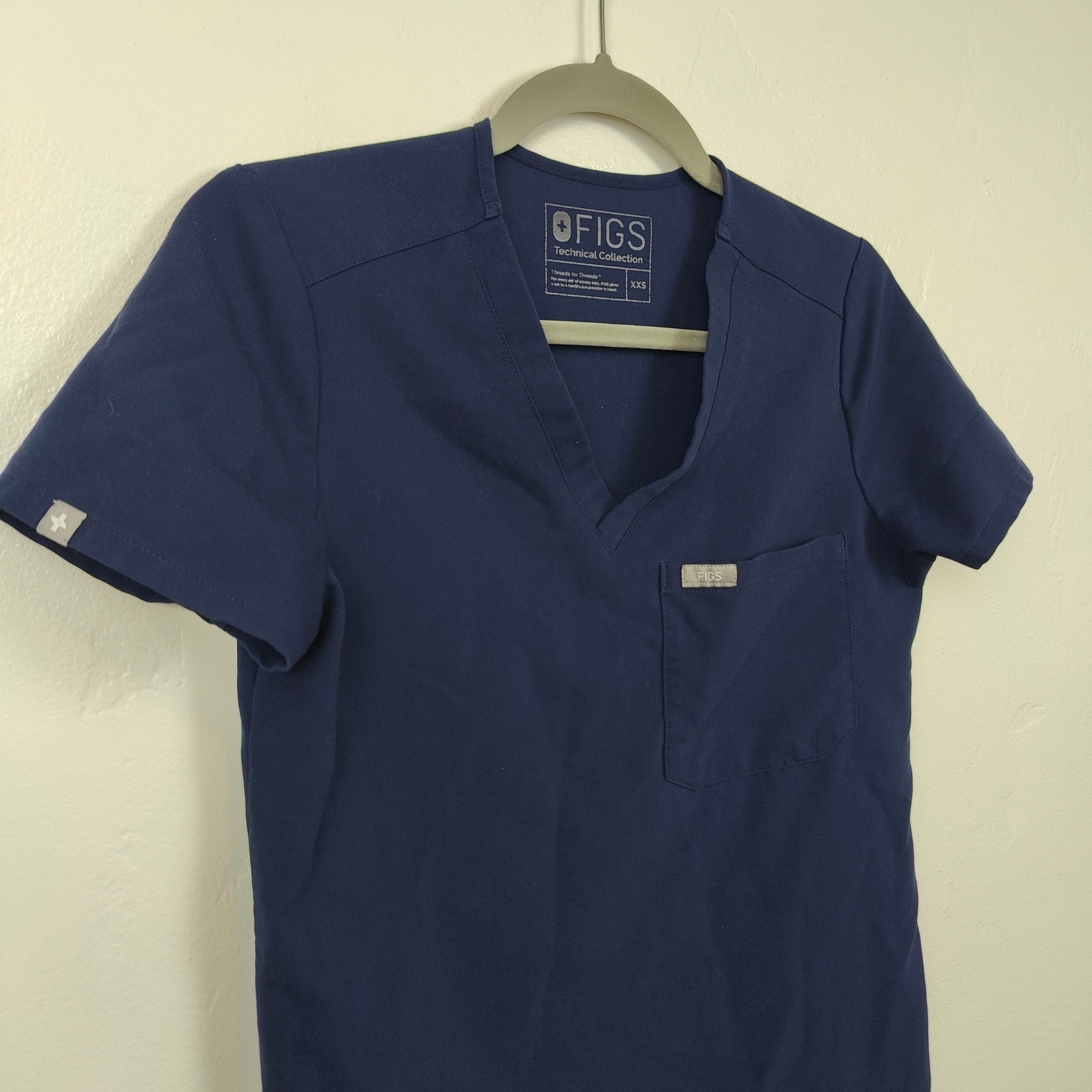 как выглядит FIGS Catarina Top Womens XXS Navy Blue V-Neck Pocket Scrub Medical Workwear фото