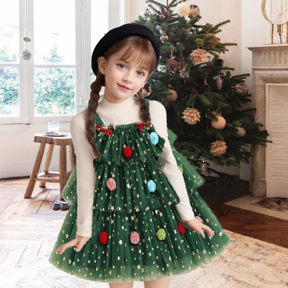 как выглядит Toddler Christmas Dress Girl 2T Tulle Tutu Green Tree Holiday Party Princess фото