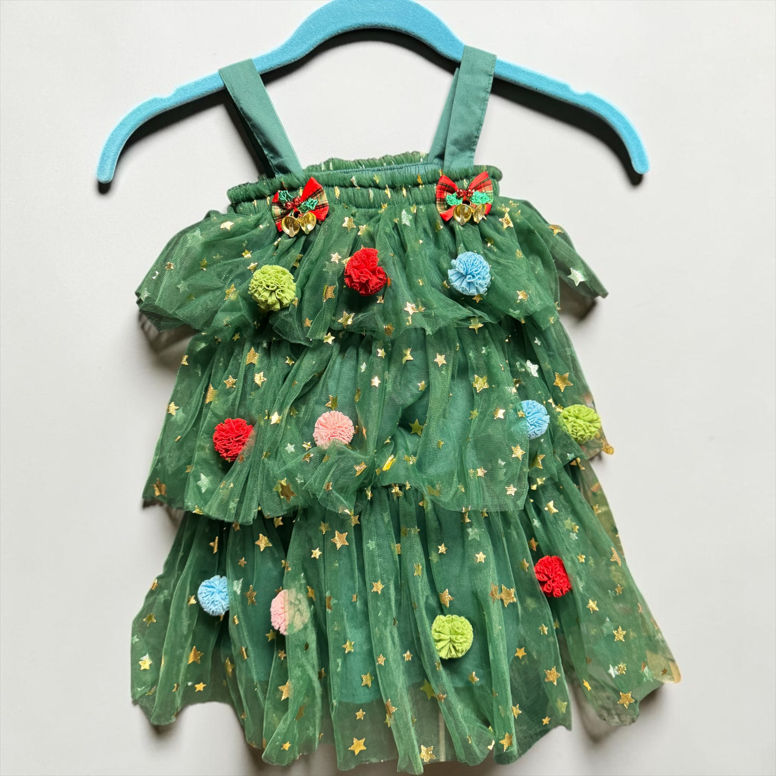 Toddler Christmas Dress Girl 2T Tulle Tutu Green Tree Holiday Party Princess