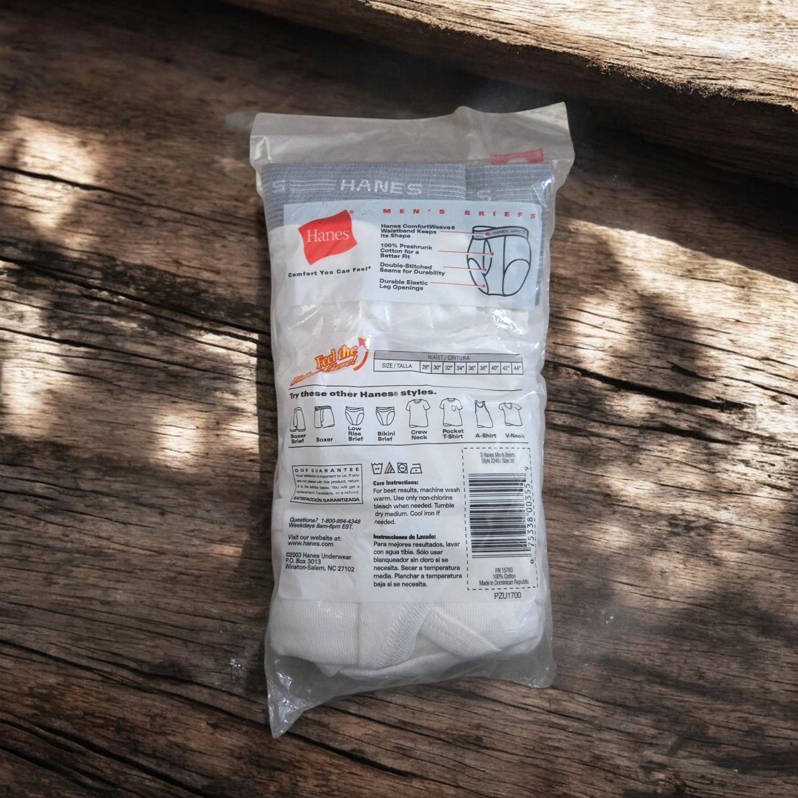 New 2003 Hanes Mens Briefs Size 38 White Underwear Preshrunk Cotton Pack Of 3