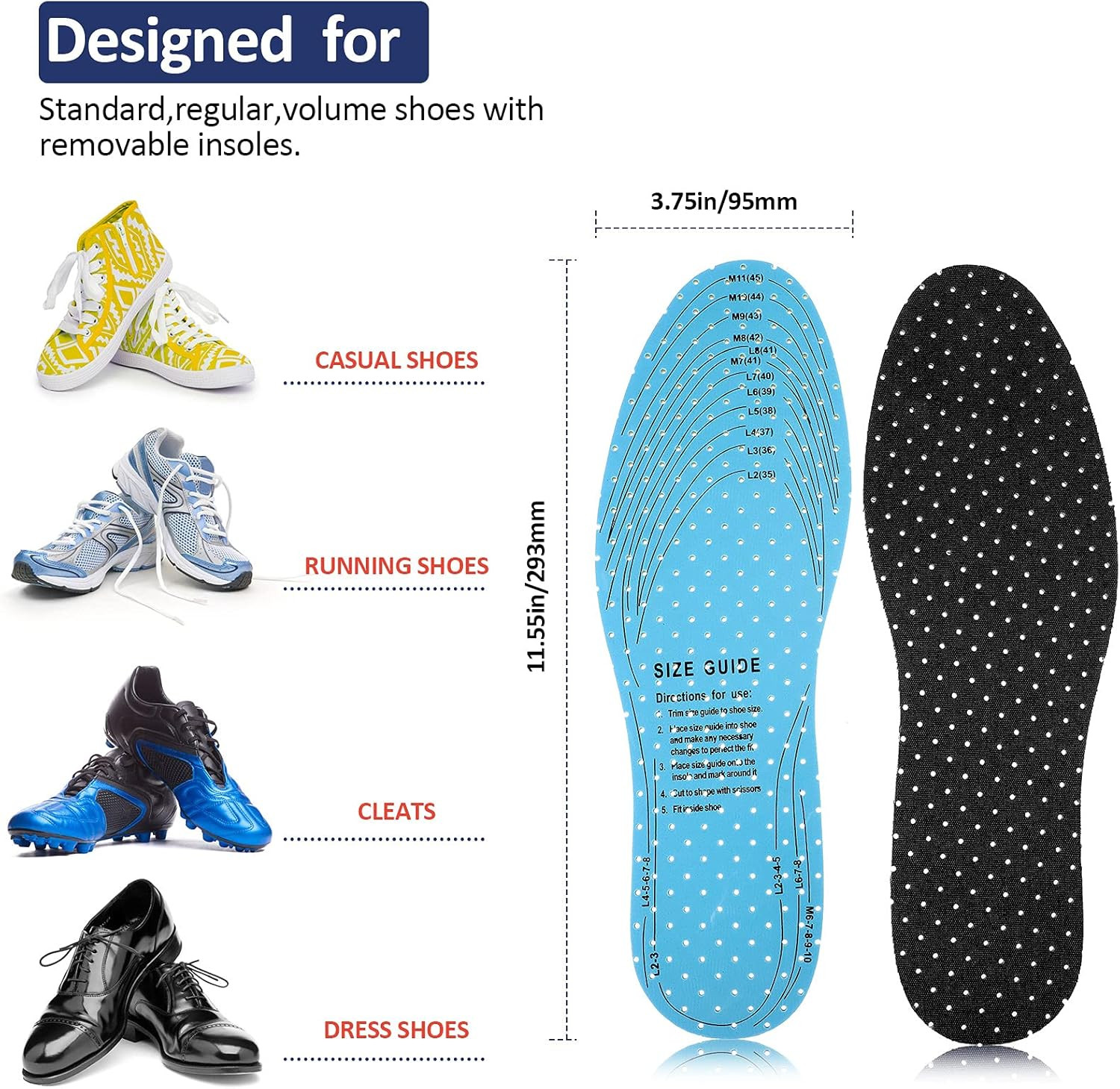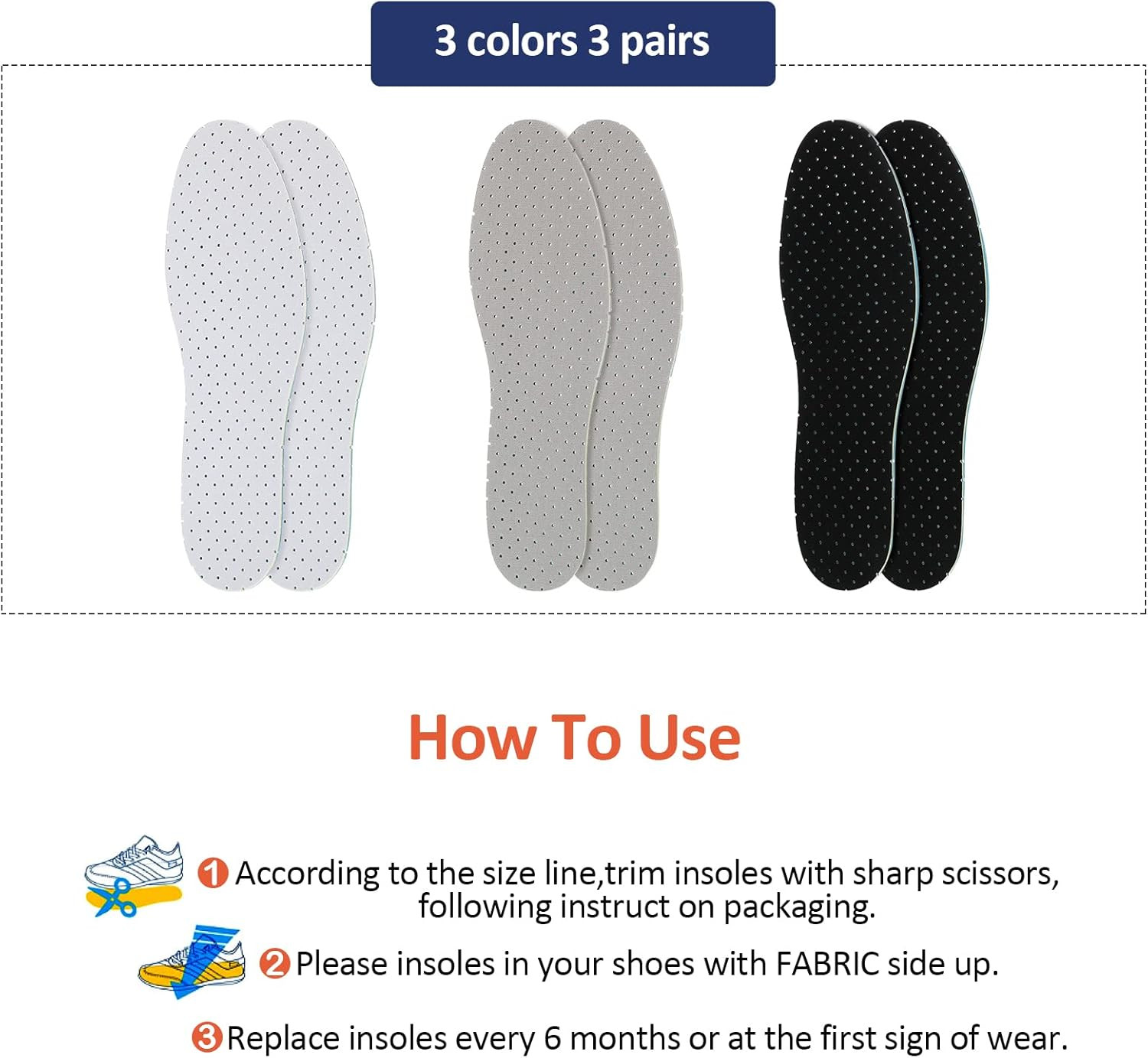 Sintege 3 Pairs Breathable Shoe Insoles Inserts Soft Cushioning Double-Layer Lat