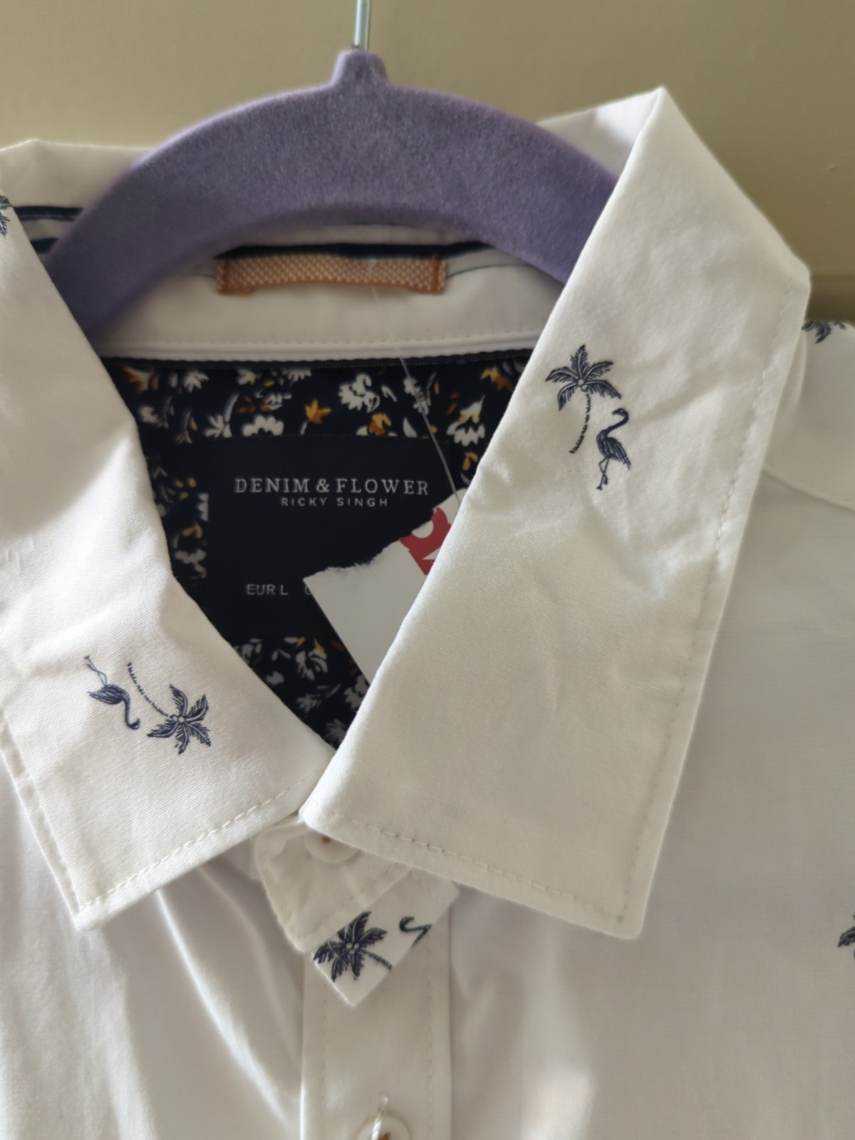 NWT Denim Flower Ricky Singh Men Short Sleeve Shirt L White Print