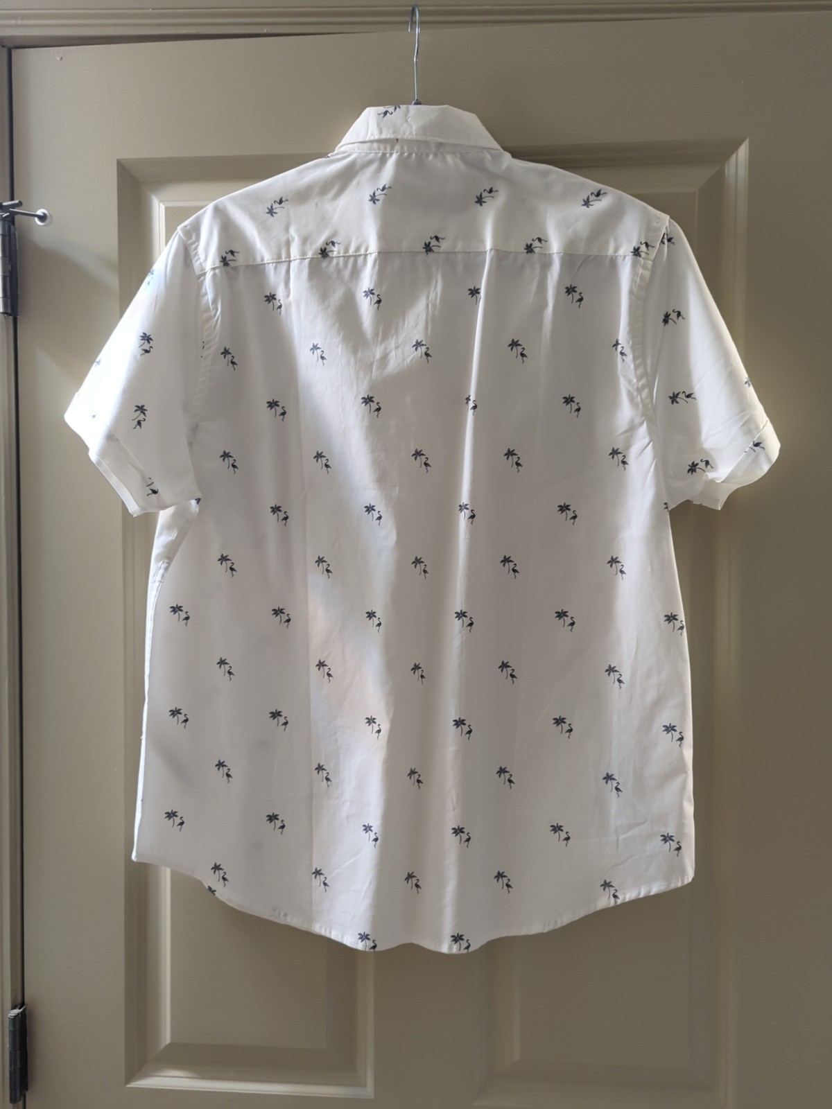 как выглядит NWT Denim Flower Ricky Singh Men Short Sleeve Shirt L White Print фото