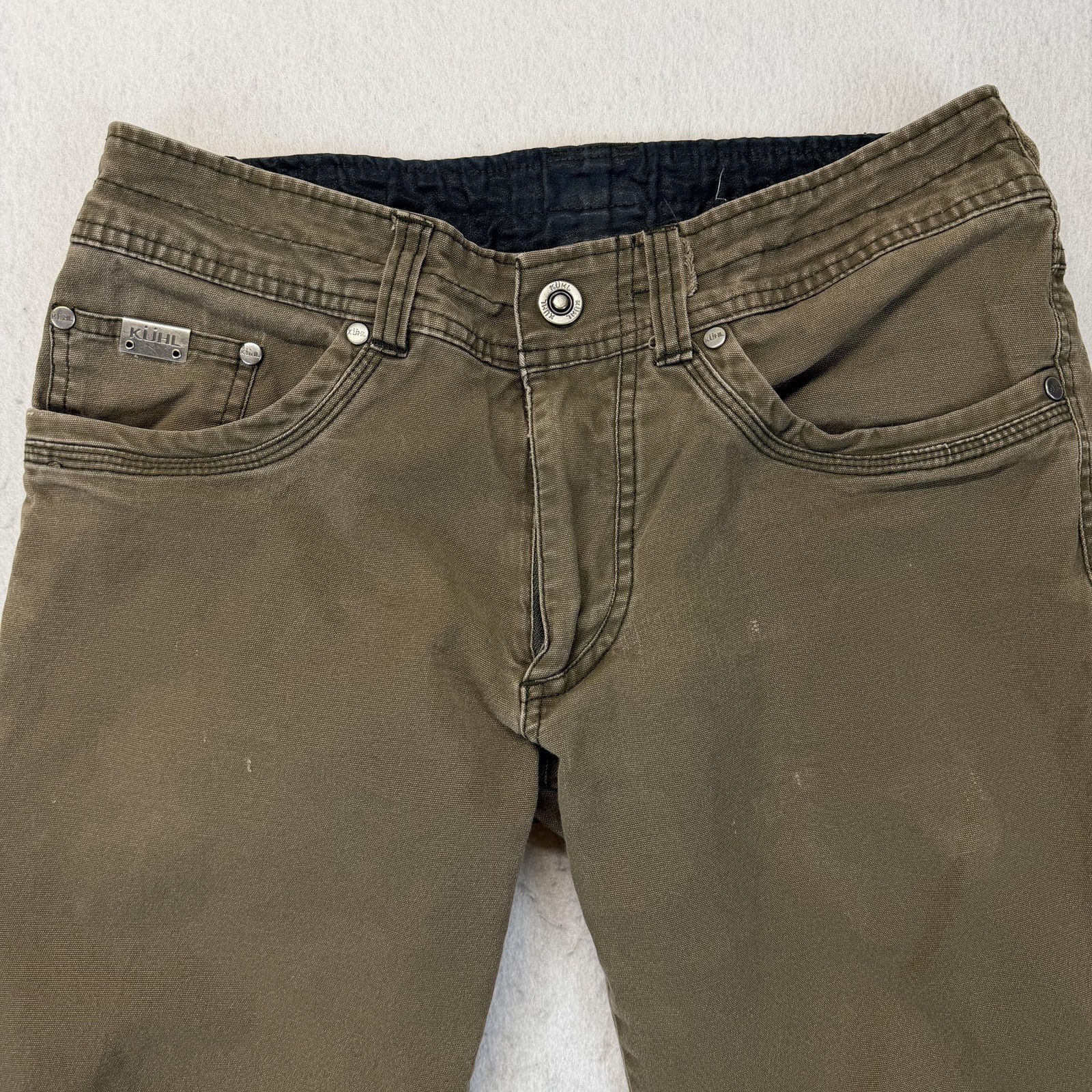 Kuhl Rydr Pants Mens 30x30 Green Stretch Outdoor Hiking Workwear Patina Dye