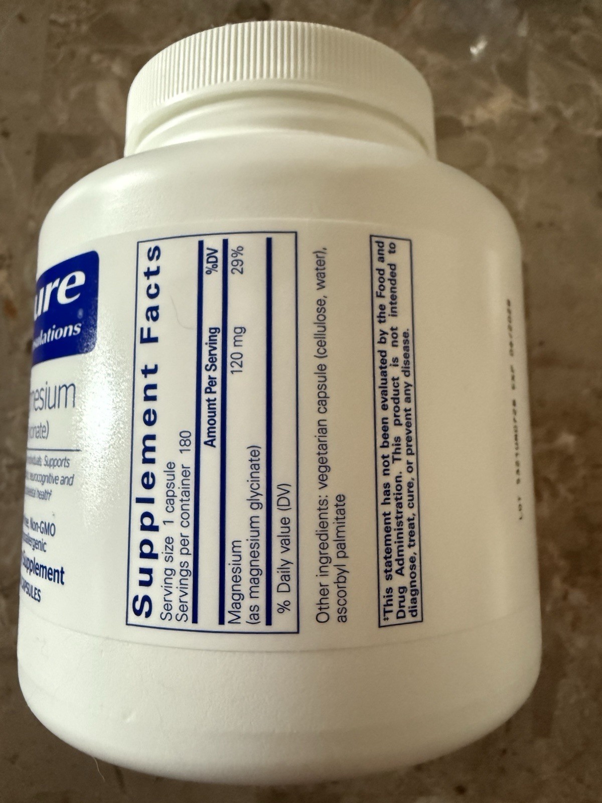 как выглядит Pure Encapsulations Magnesium glycinate 120mg Capsules - 180 Count фото