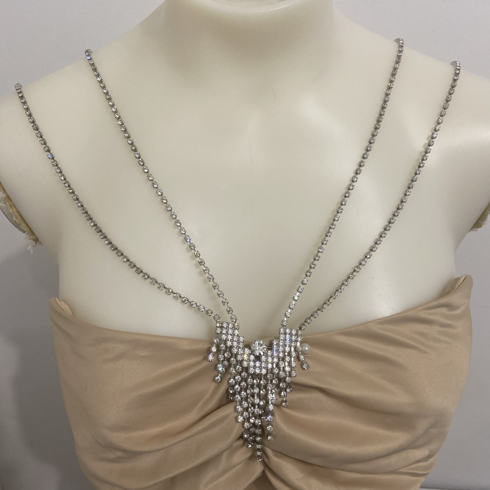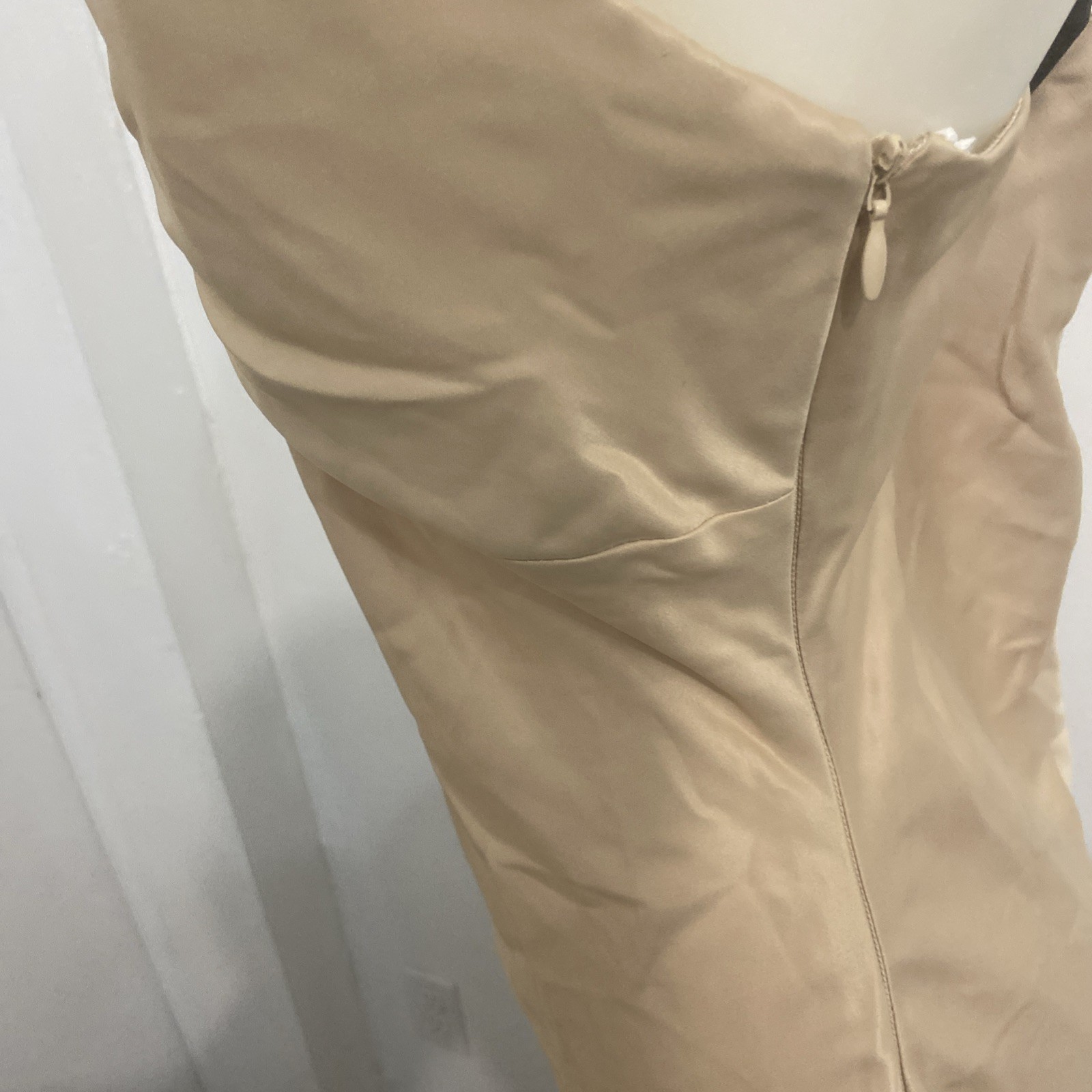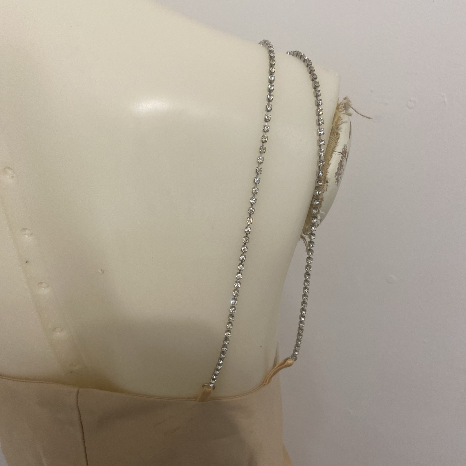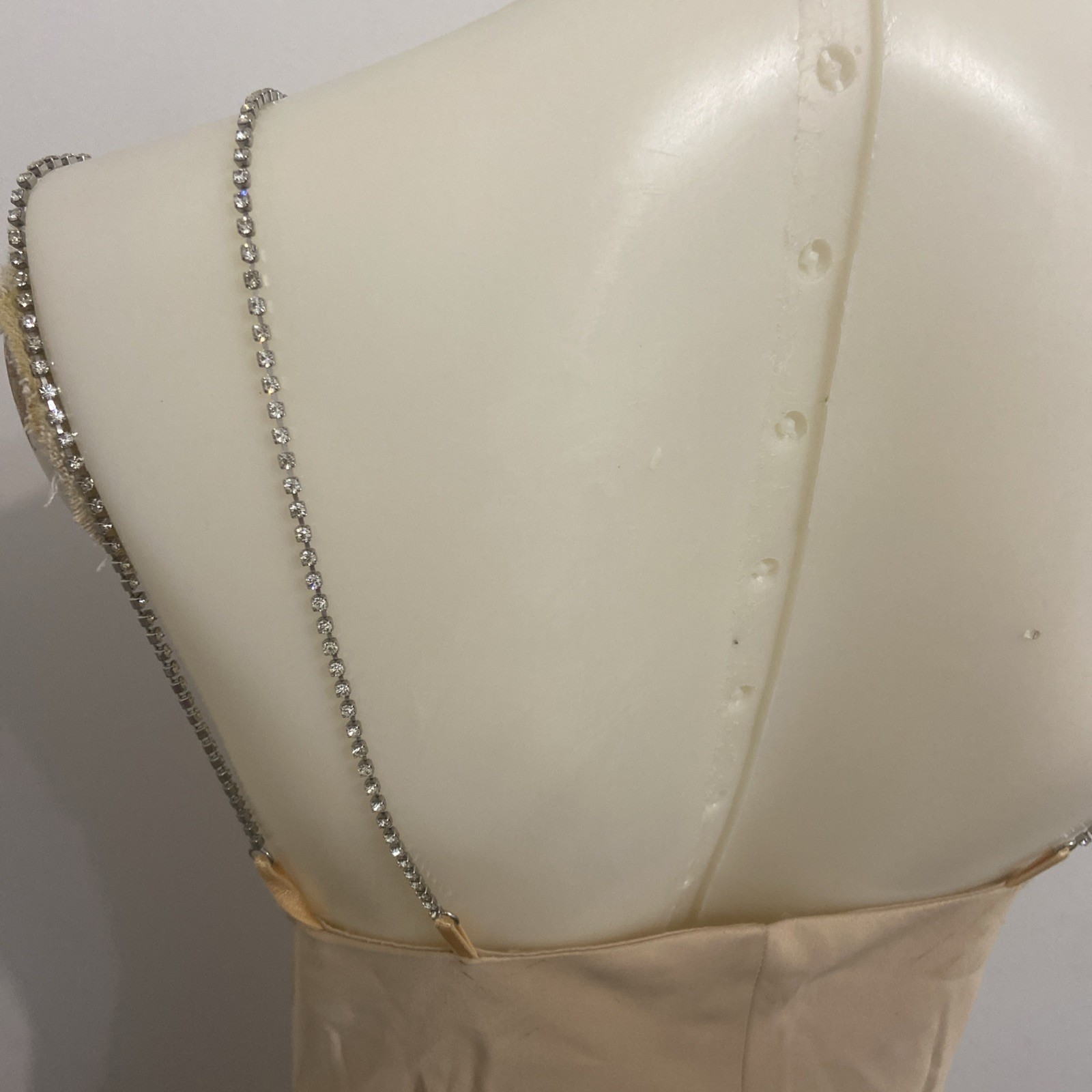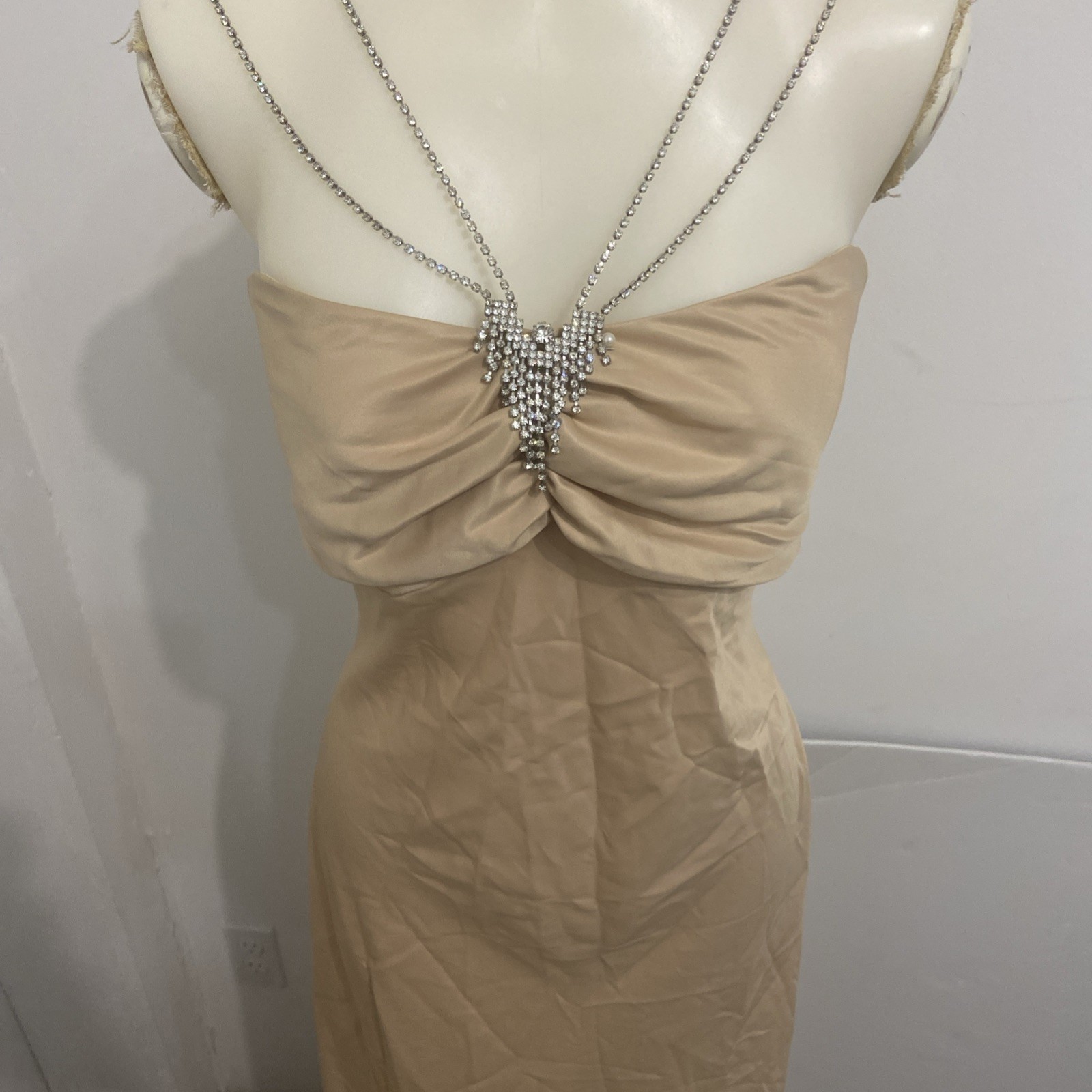 Vestido largo de noche , color champ n con tirantes decorados de pedrer a , L