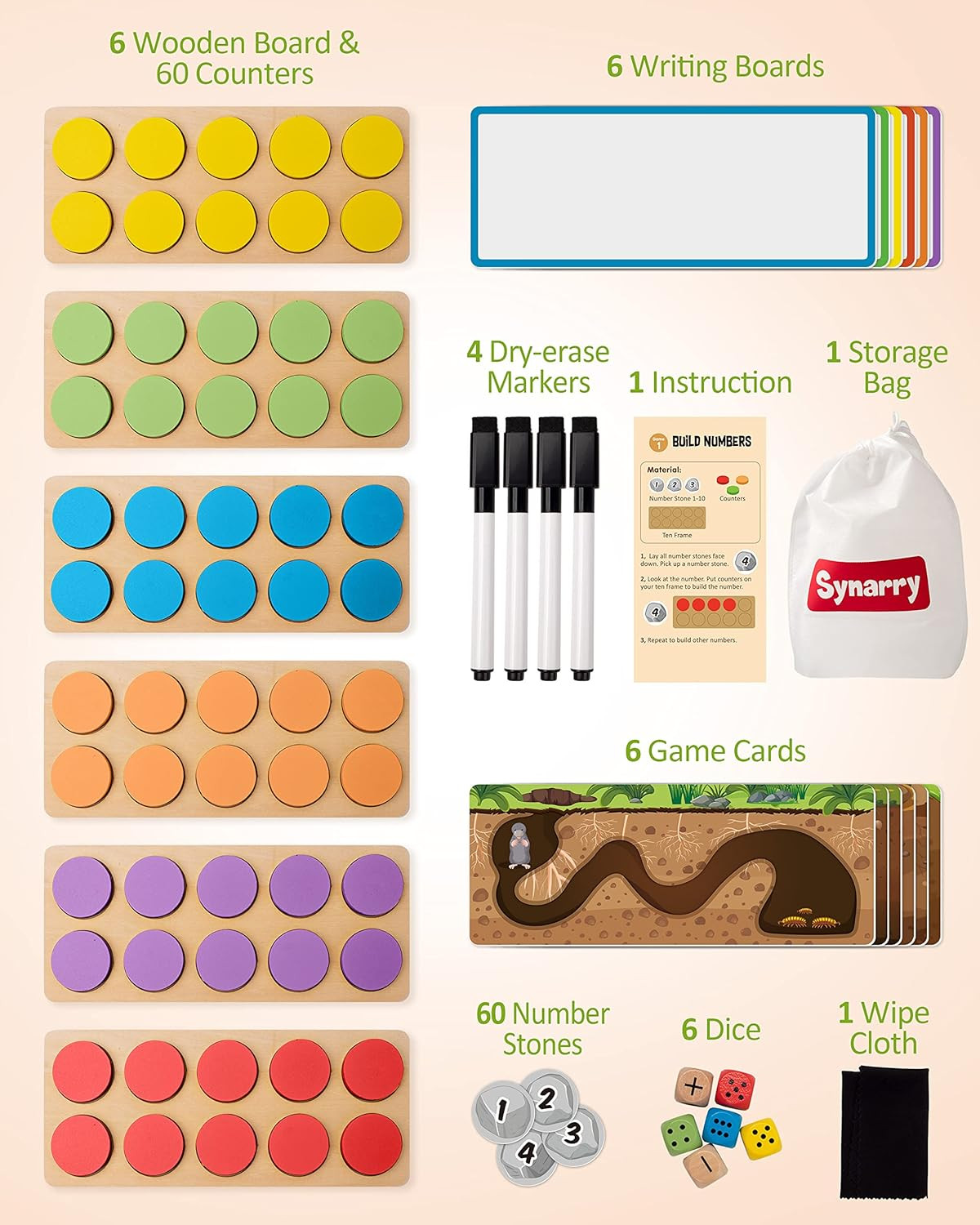 Wooden Ten-Frame Set Math Manipulatives for Kindergarten Elementary 1St 2Nd Grad