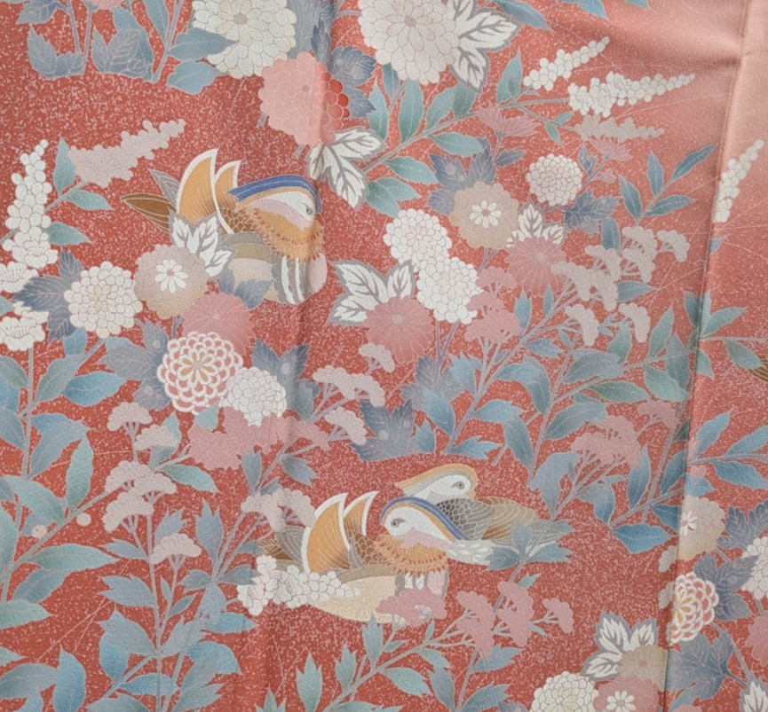 Authentic Japanese Silk Homongi Kimono Light Pink Floral Birds Art Decor Luxury