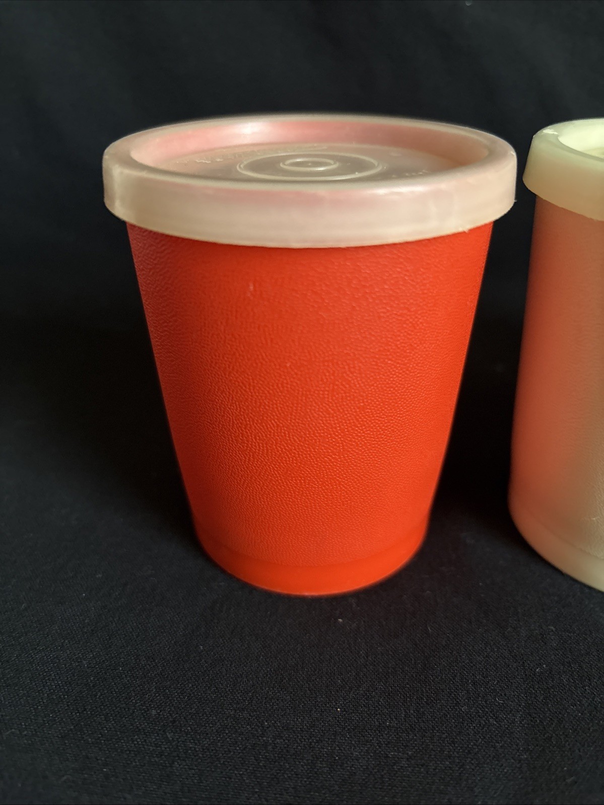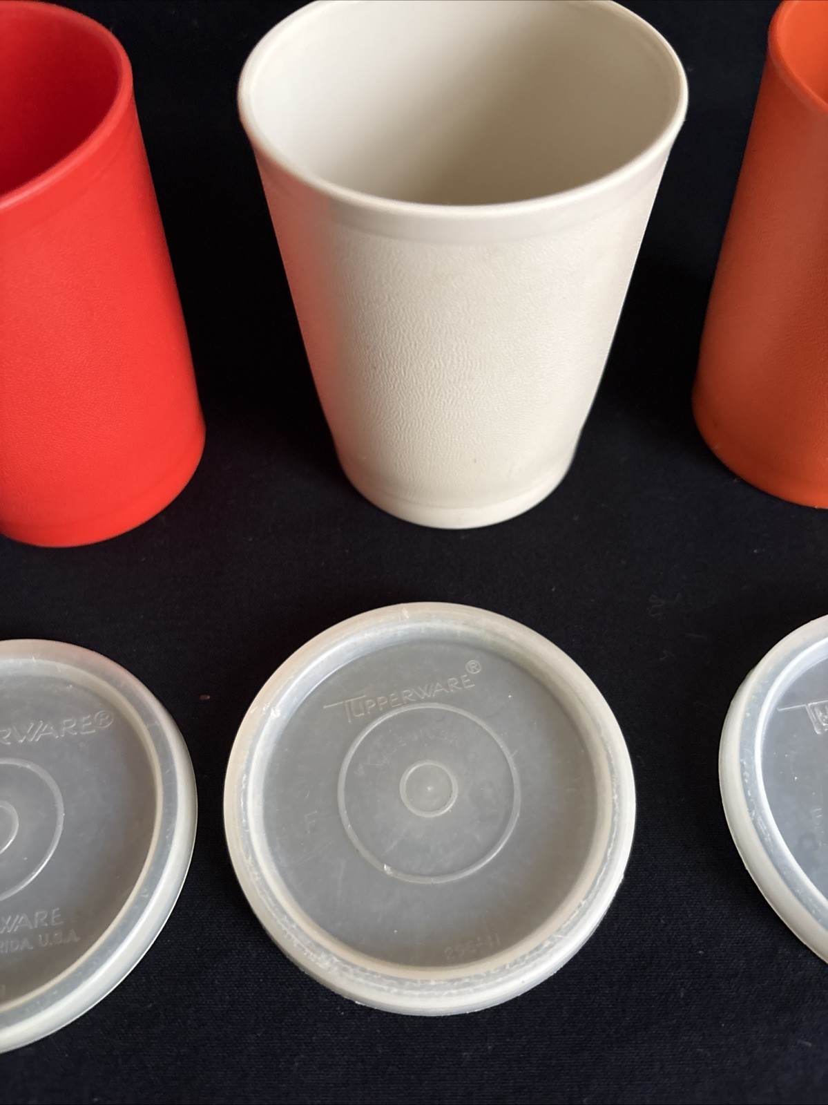 Vintage Tupperware Kids Tumblers Child Cups Clear Lids 1251 296 Harvest Beige