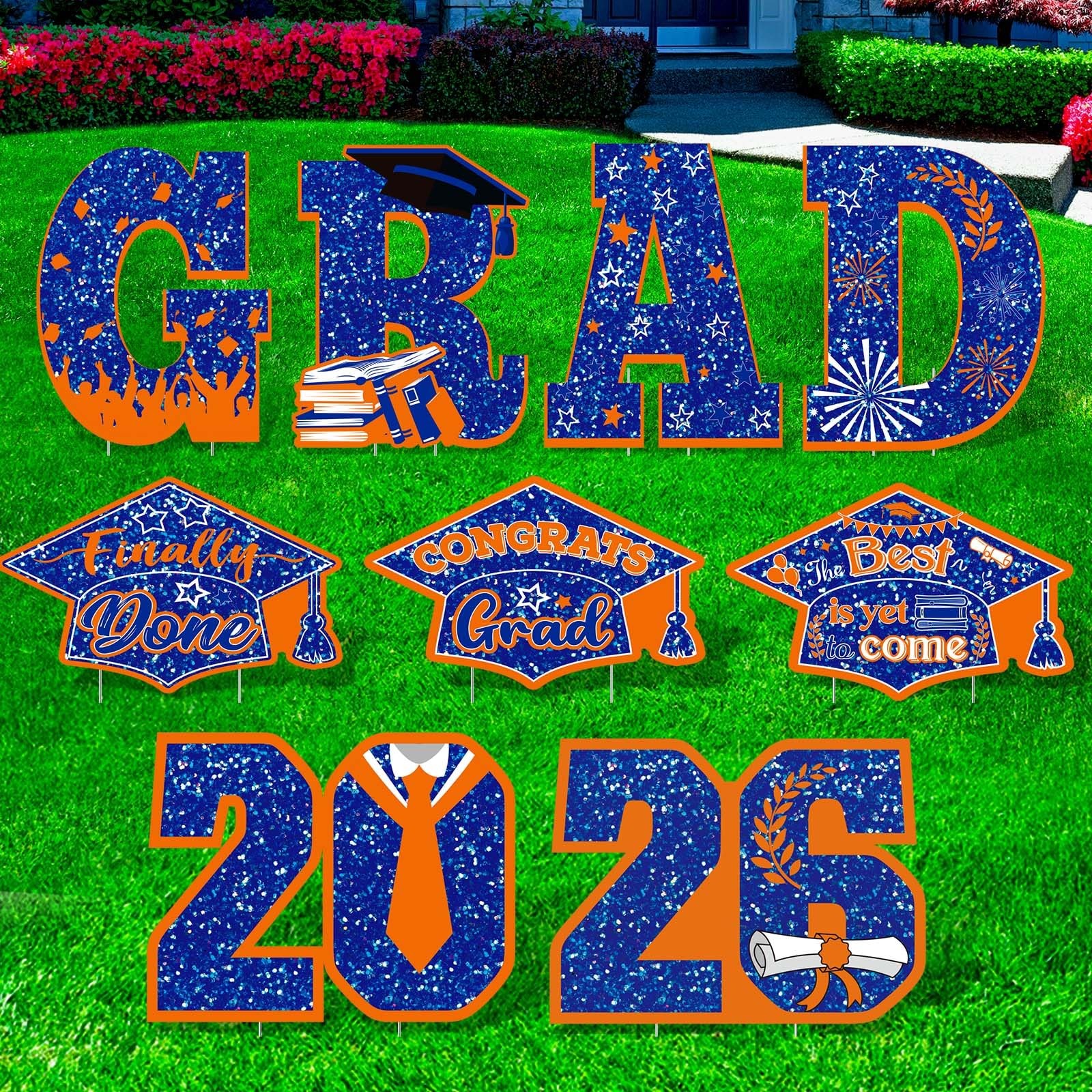 Graduation Yard Sign Decorations Class of 2026 Grad Lawn Signs, 9 Pcs 16.5 Inch