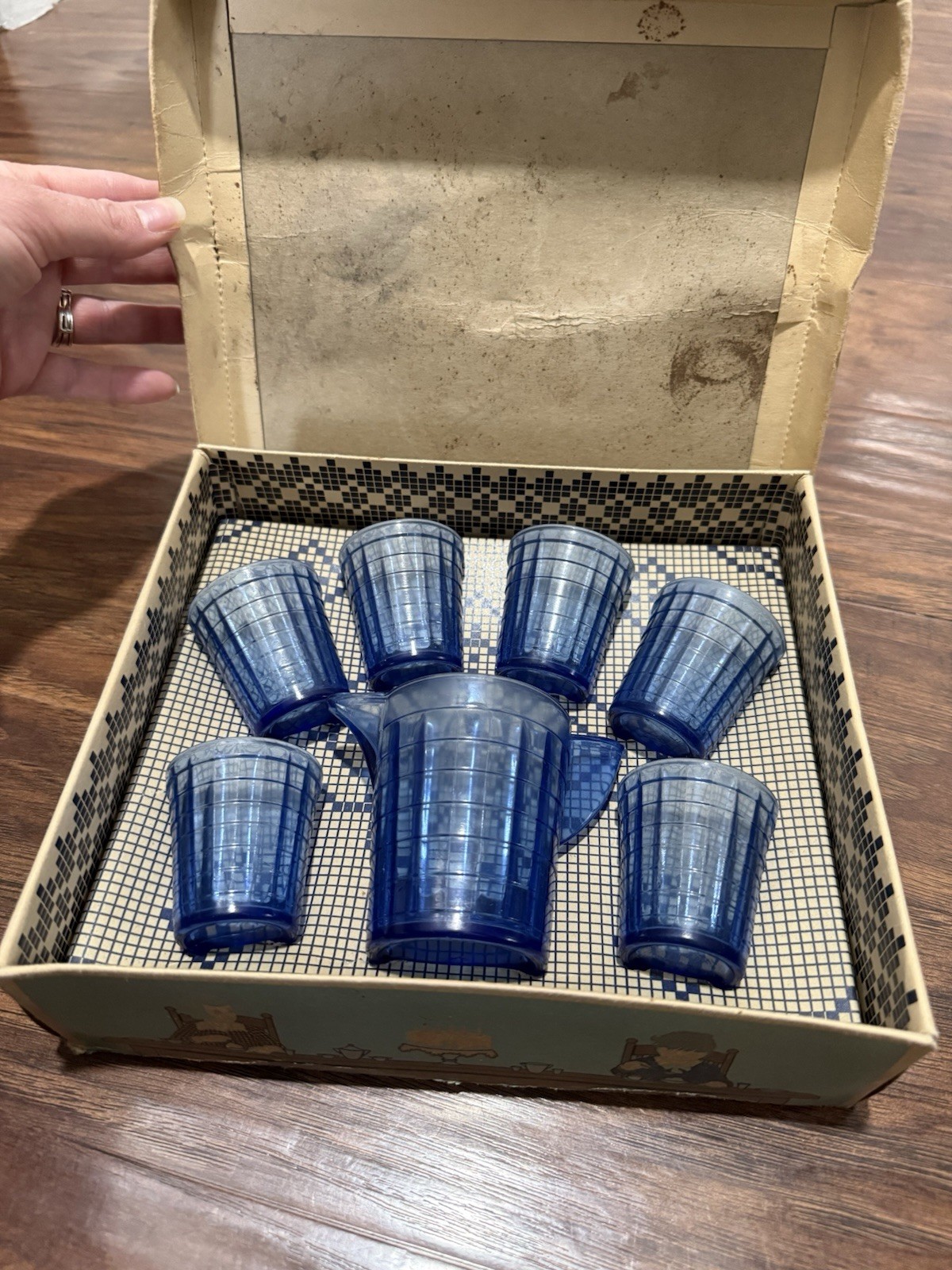 как выглядит Vintage Play Time Blue Glass Dishes фото