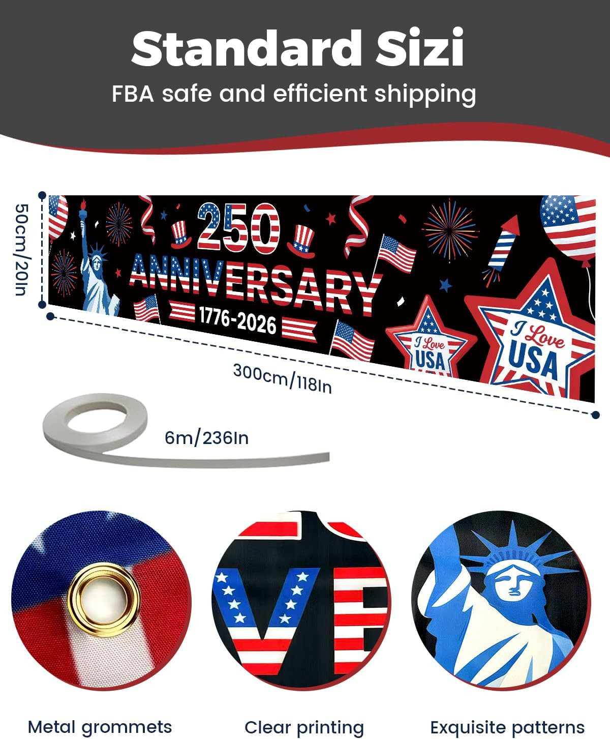 250Th Anniversary USA Banner Flag, 4Th of July Decorations Outdoor,1776-2026 the