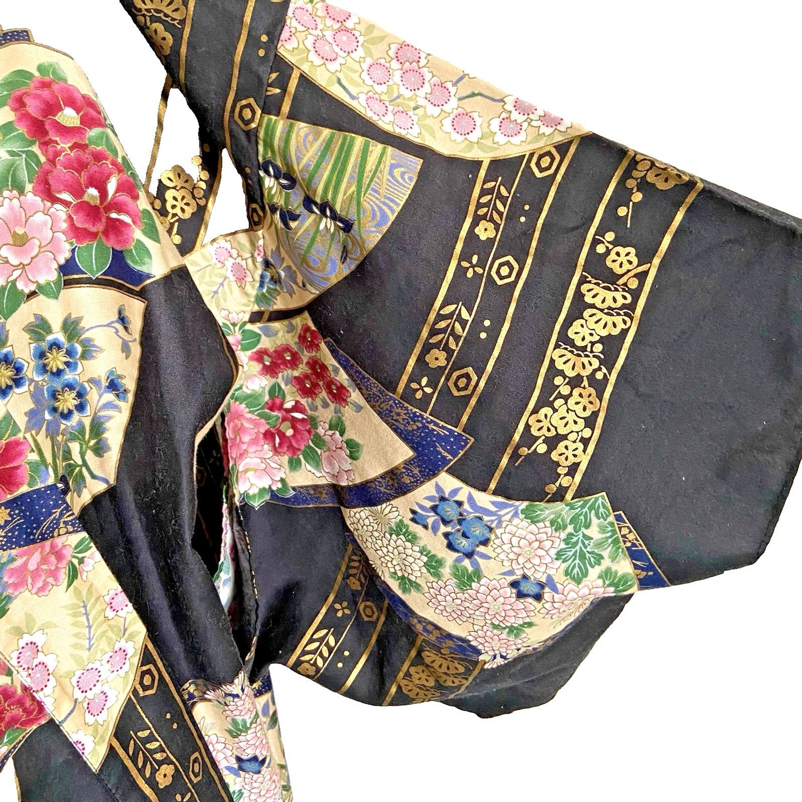 Kimono Robe Made in Japan Medium Cotton Black With Flower Blossoms No Sash