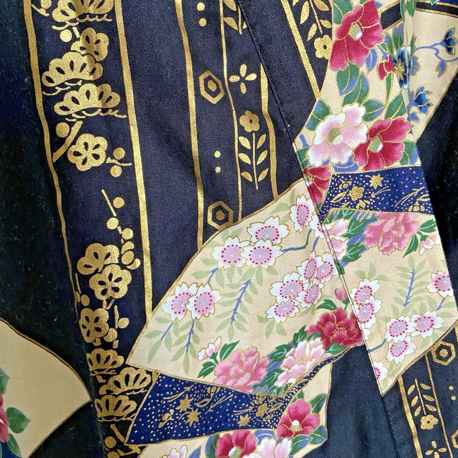 как выглядит Kimono Robe Made in Japan Medium Cotton Black With Flower Blossoms No Sash фото