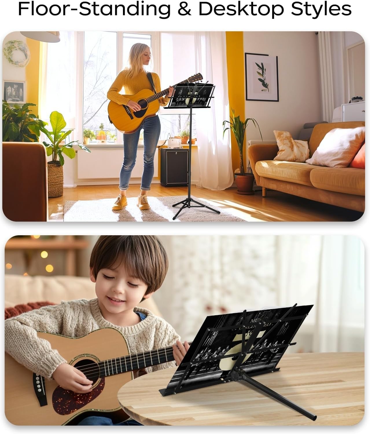 Lightweight Music Stand Set - Dual Use Folding Stand with Carrying Bag, 2 Pack