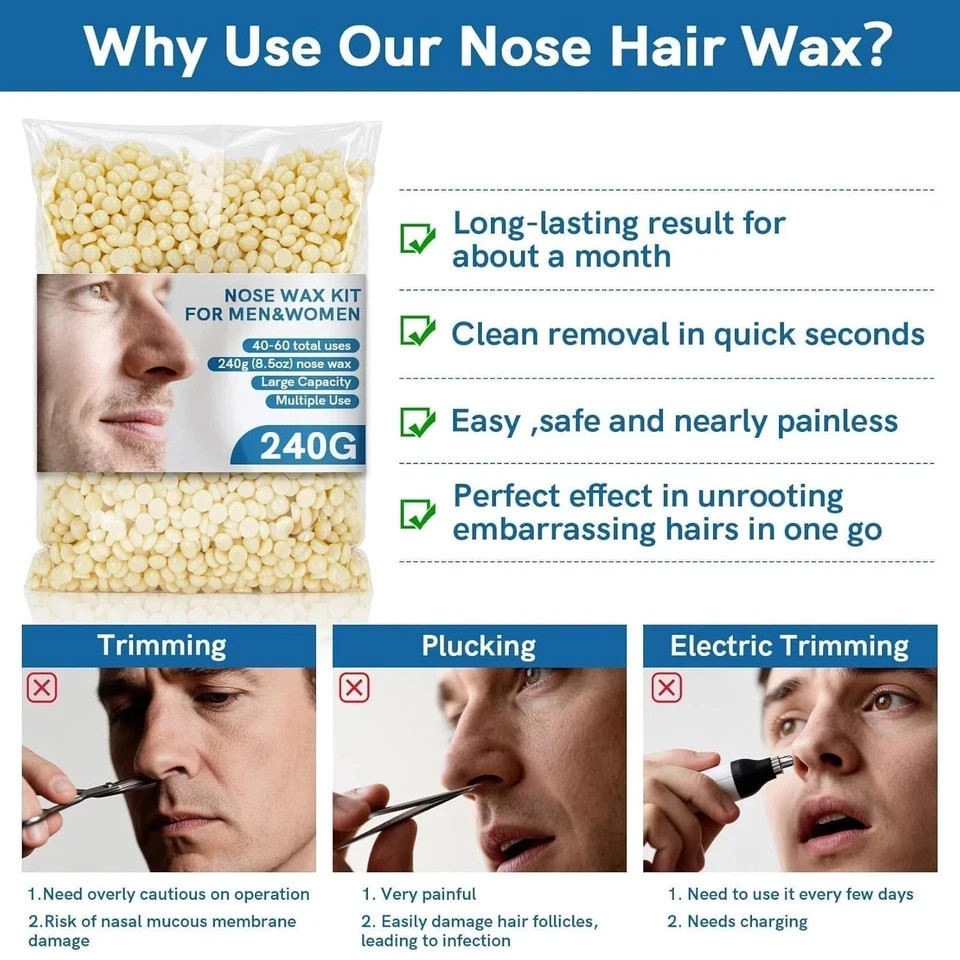 240G Nose Wax Kit - Ear Nose Hair Wax Kit for Men and Women,40-60 Uses,Quick