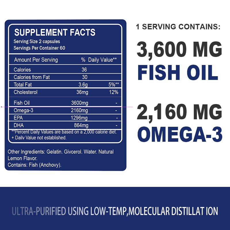 3x Strength EPA DHA Omega 3 Fish Oil 3600mg,Highest Potency,1-4 Packs Caps