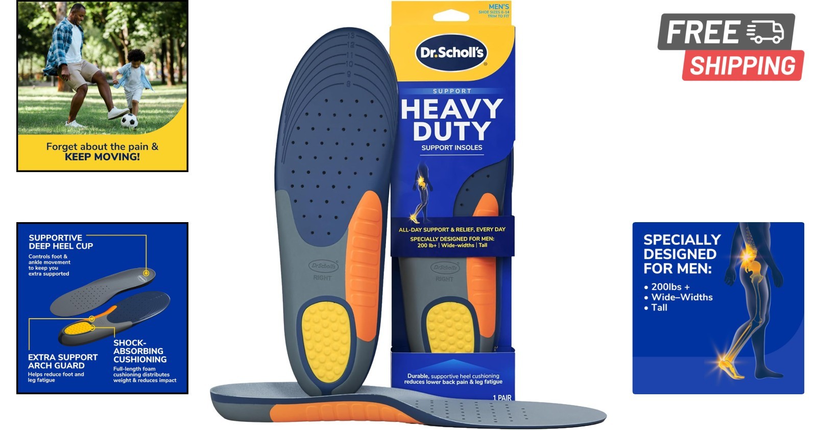 как выглядит Heavy Duty Arch Support Insoles for Men 200lbs , Shock Absorbing Comfort фото