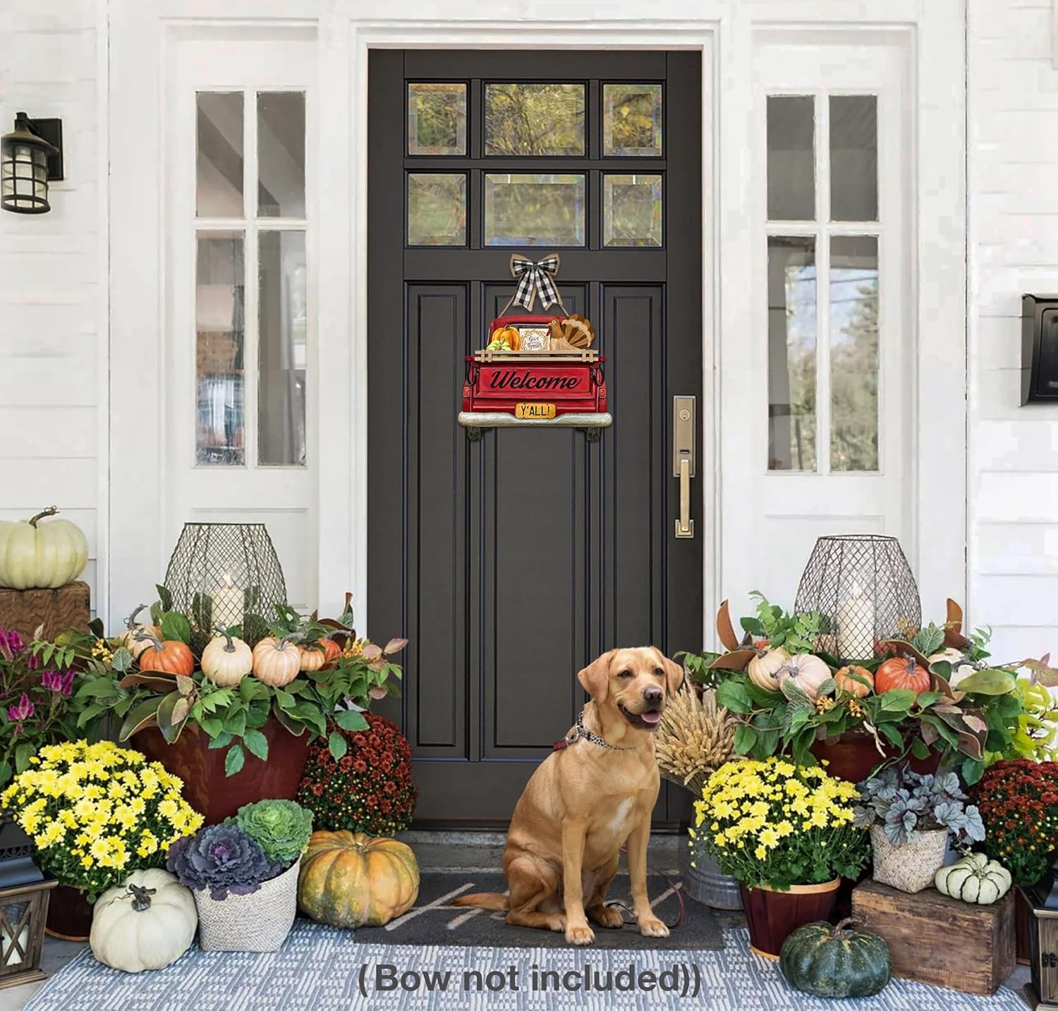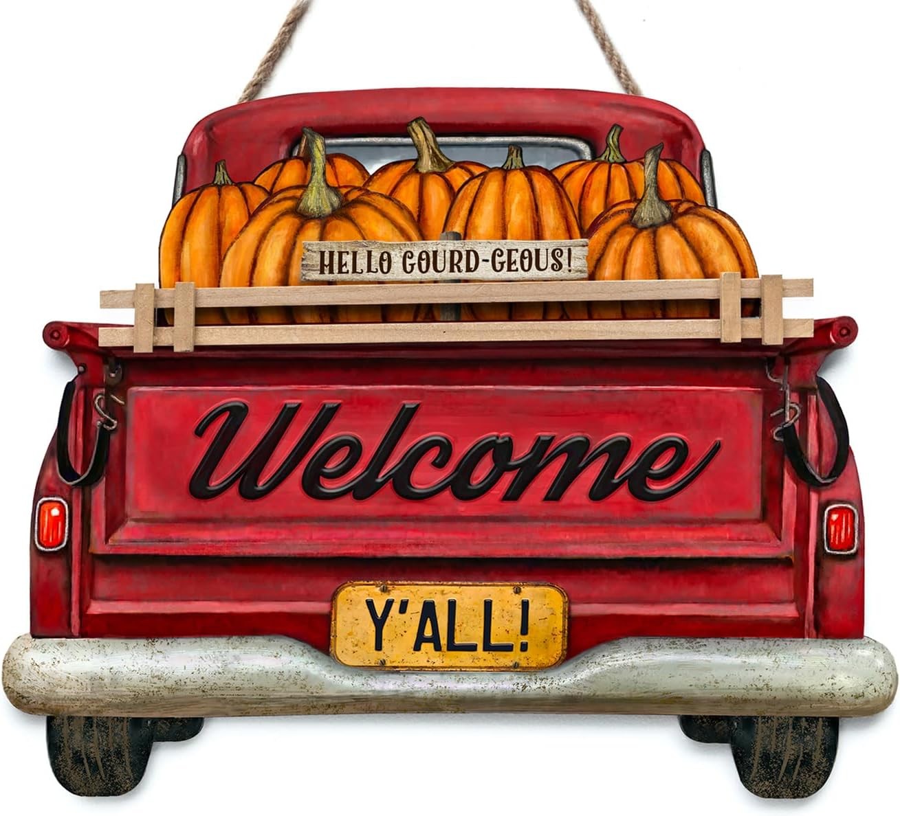 Interchangeable Welcome Sign for Front Door Red Farmhouse Truck Decor Hanging