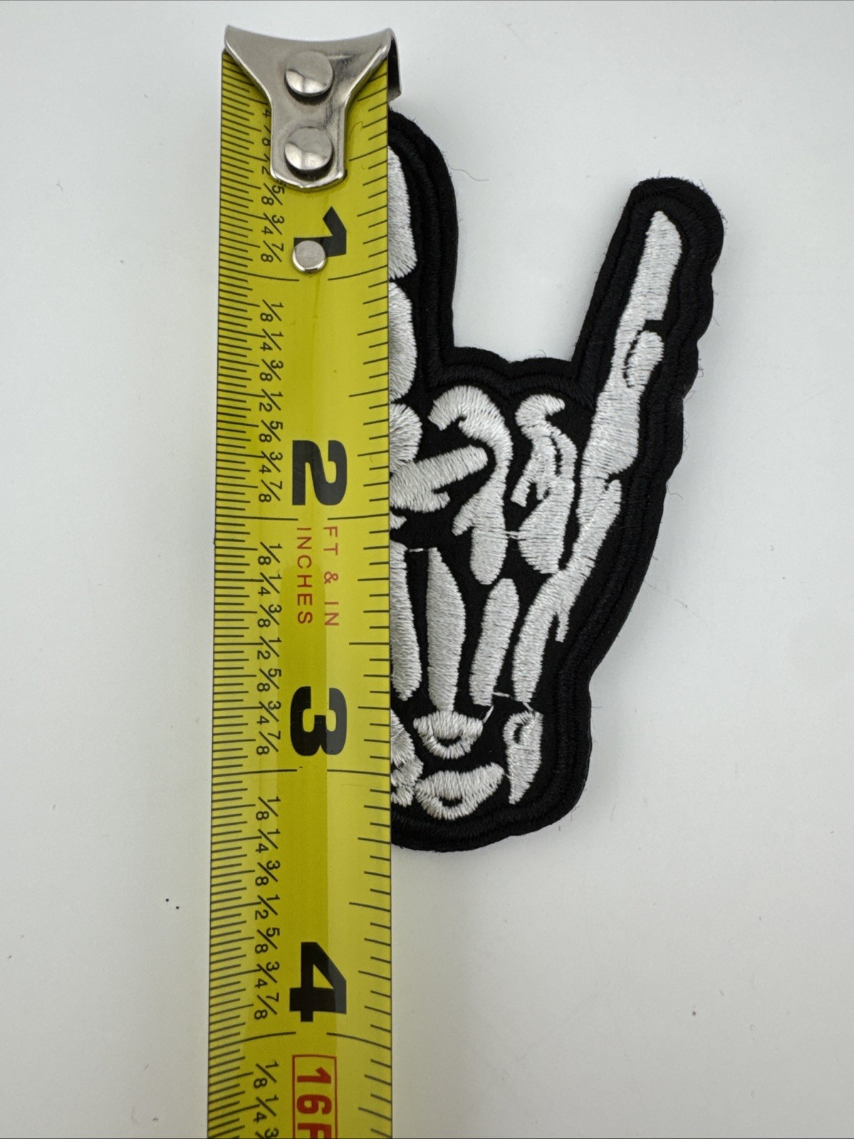 Skeleton Devil Horns Embroidered Patch Black White 3 Iron On Rock Punk