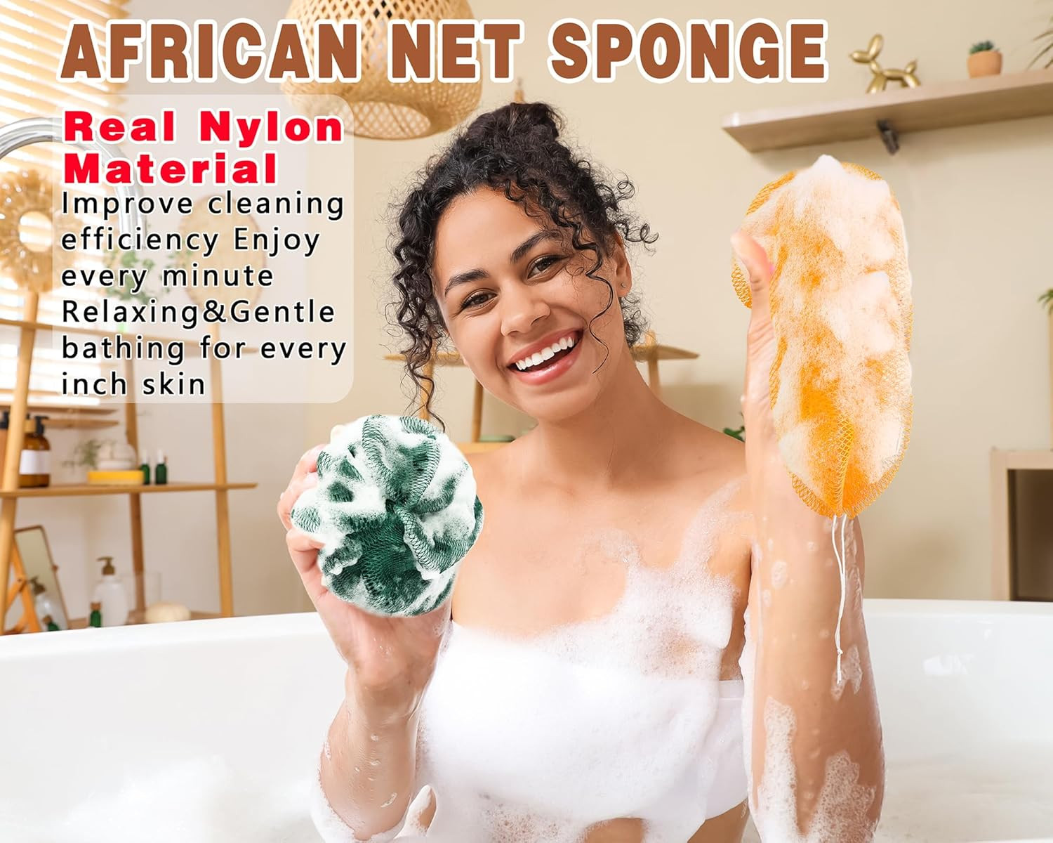 2 Pack African Net Sponge Exfoliating Body Scrubber Bath Sponge for Daily Use Y