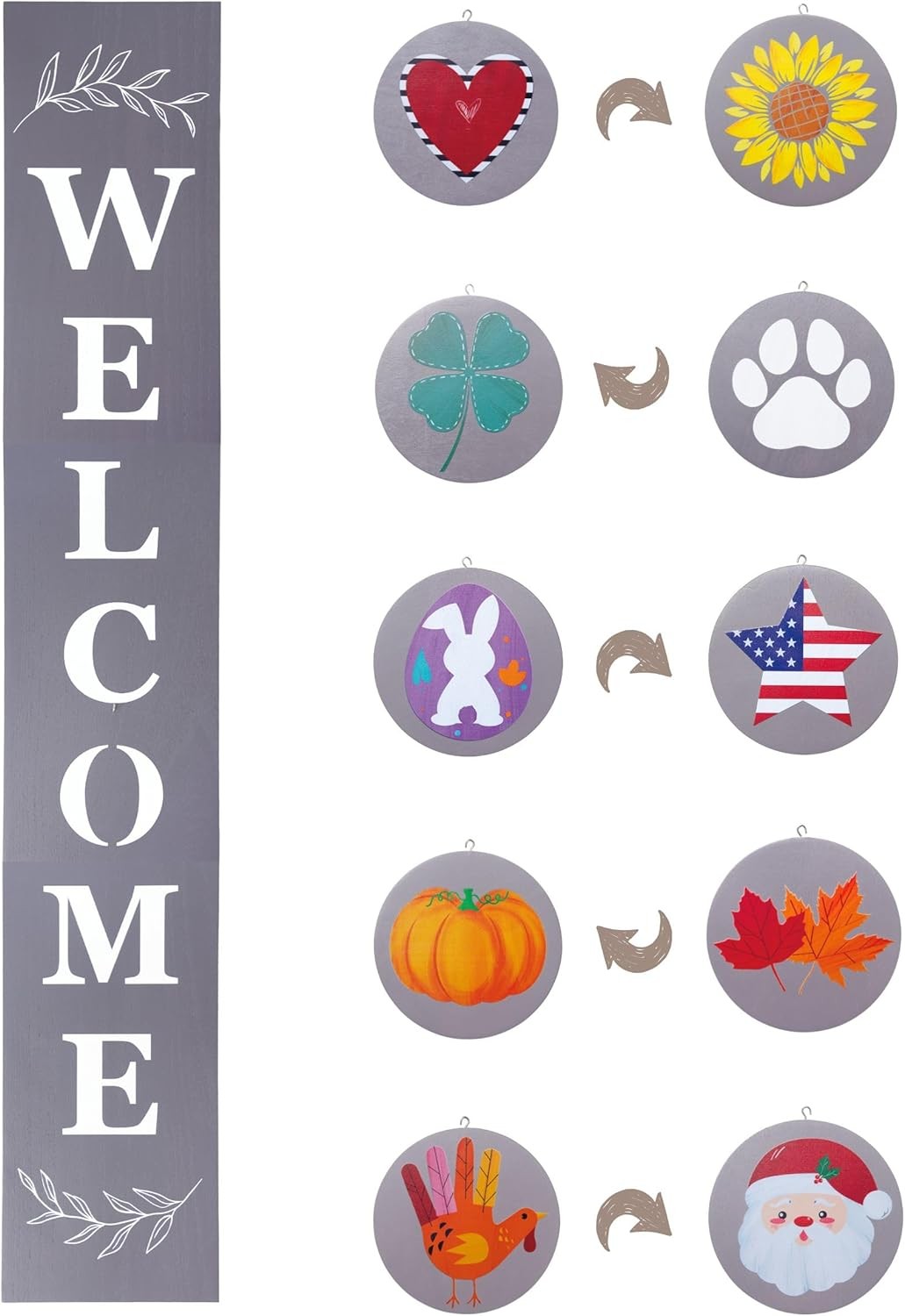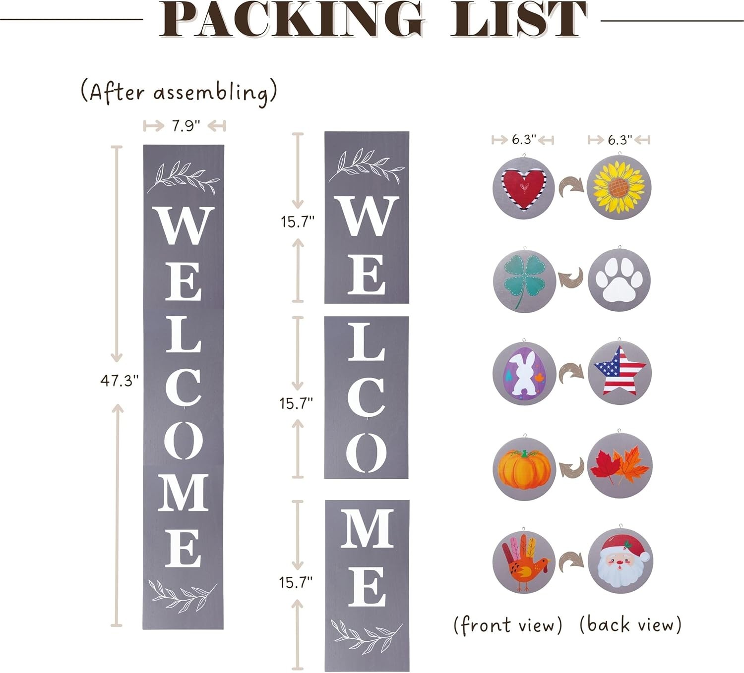 Interchangeable Welcome sign for front porch standing,47 x 7.9Inch Black Wooden