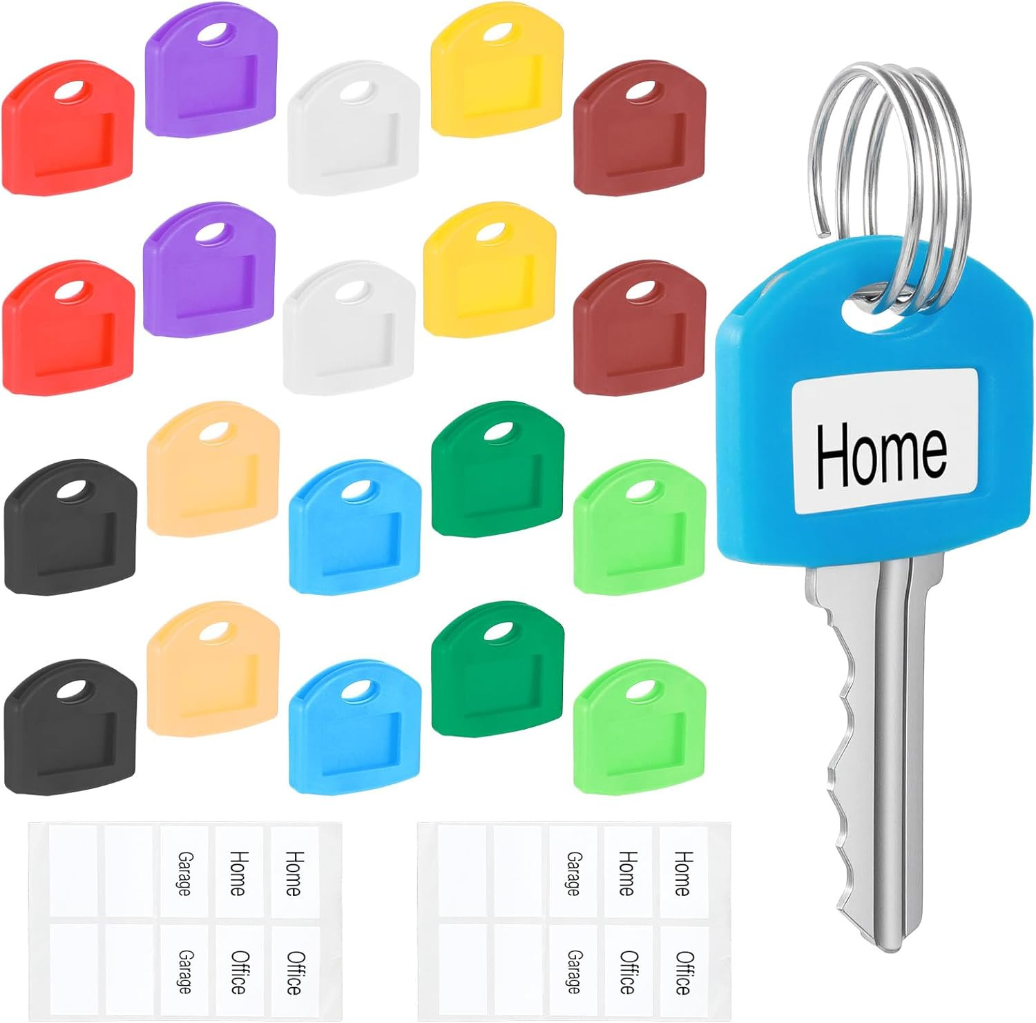 20 Pcs Colored Key Covers 1" Key Identifiers with Labels Keys Covers Caps Cute K