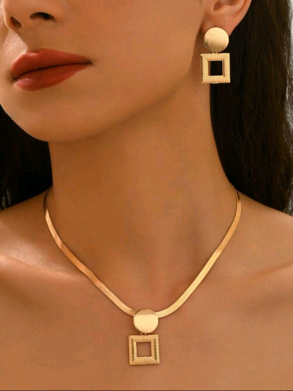 2pcs/set New Geometric Square Pendant Necklace Earring Set Collarbone Jewelry