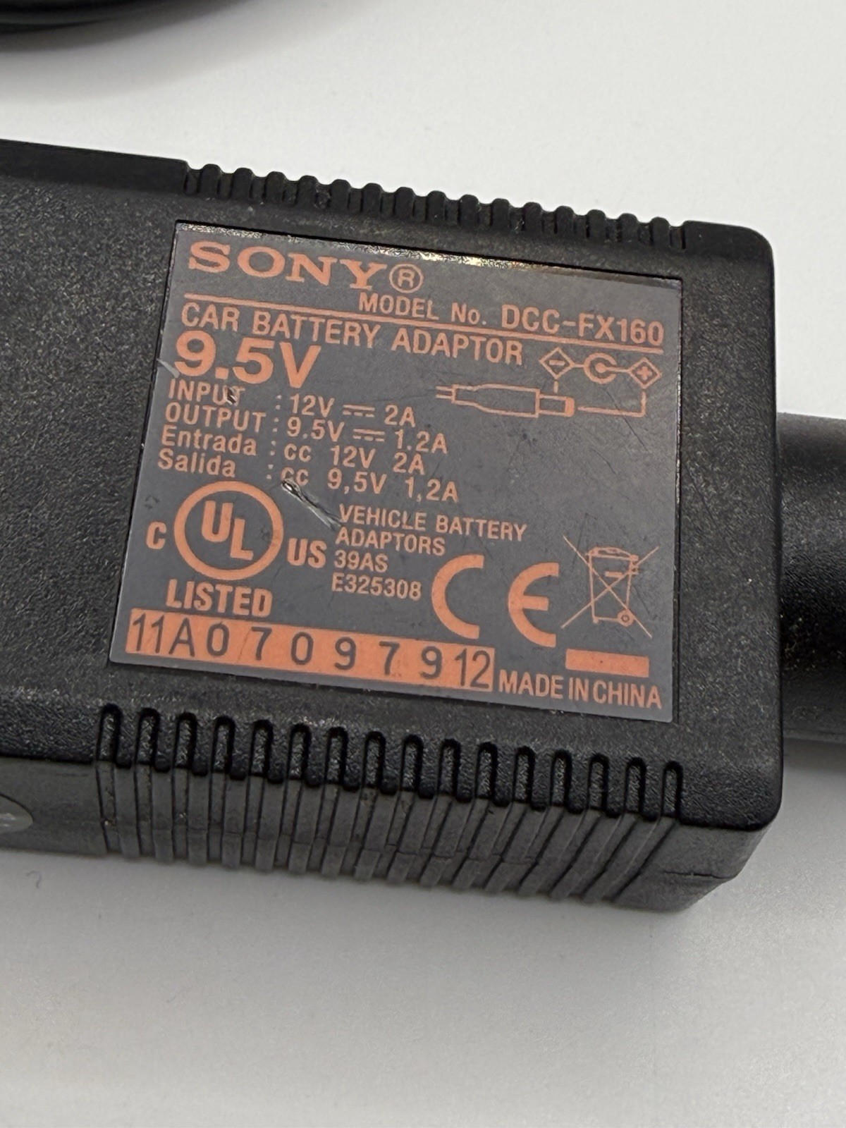 как выглядит Sony DCC-FX160 Car Battery Adapter 9.5V DC Power Cord Charger OEM фото