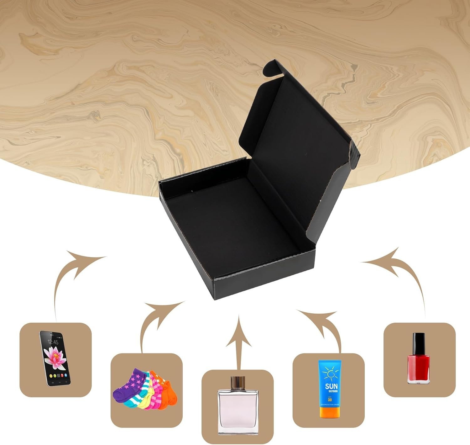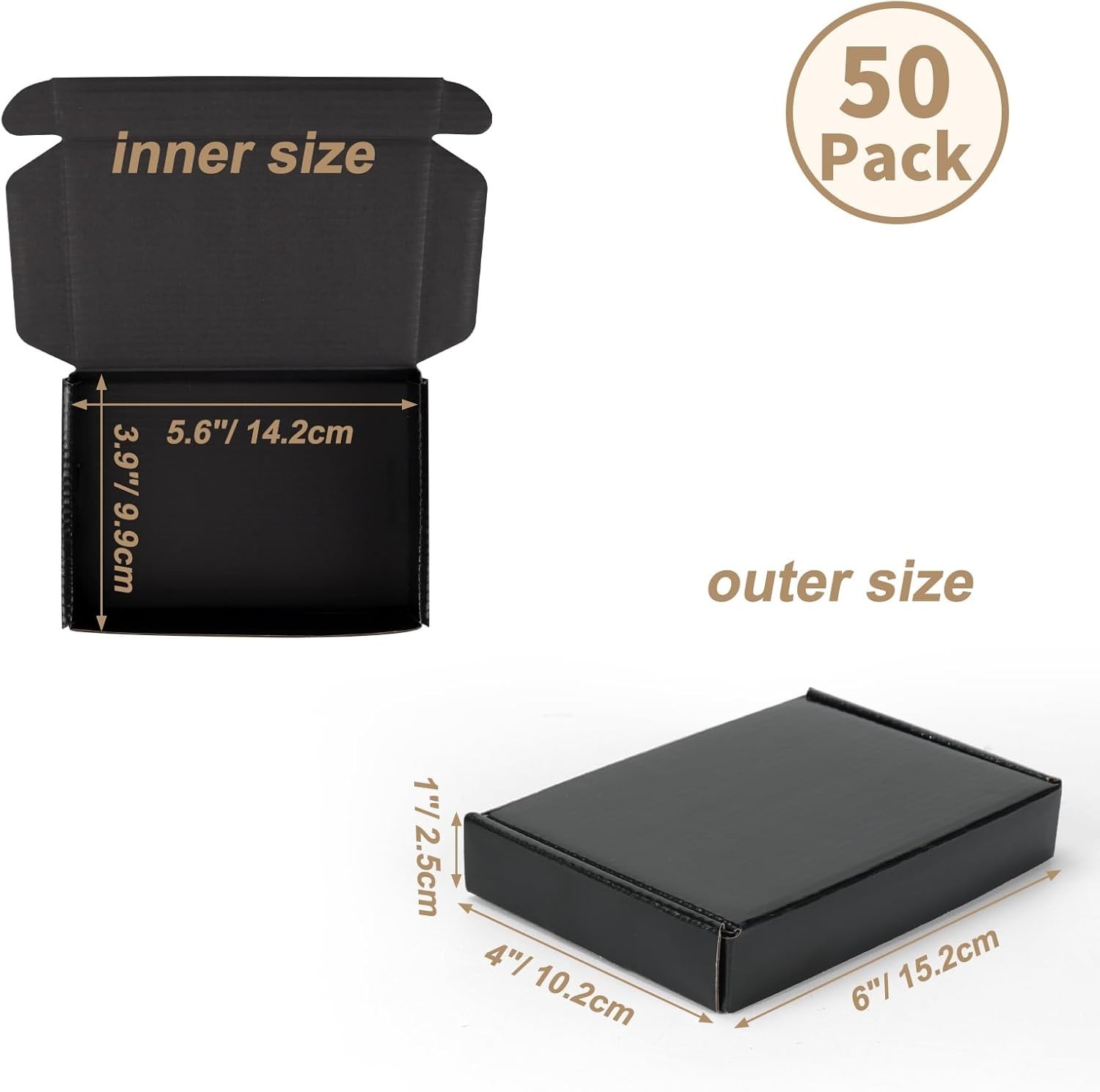 Sturdy 50 Pack Black Cardboard Shipping Boxes 6x4x1 for All Your Packaging Needs