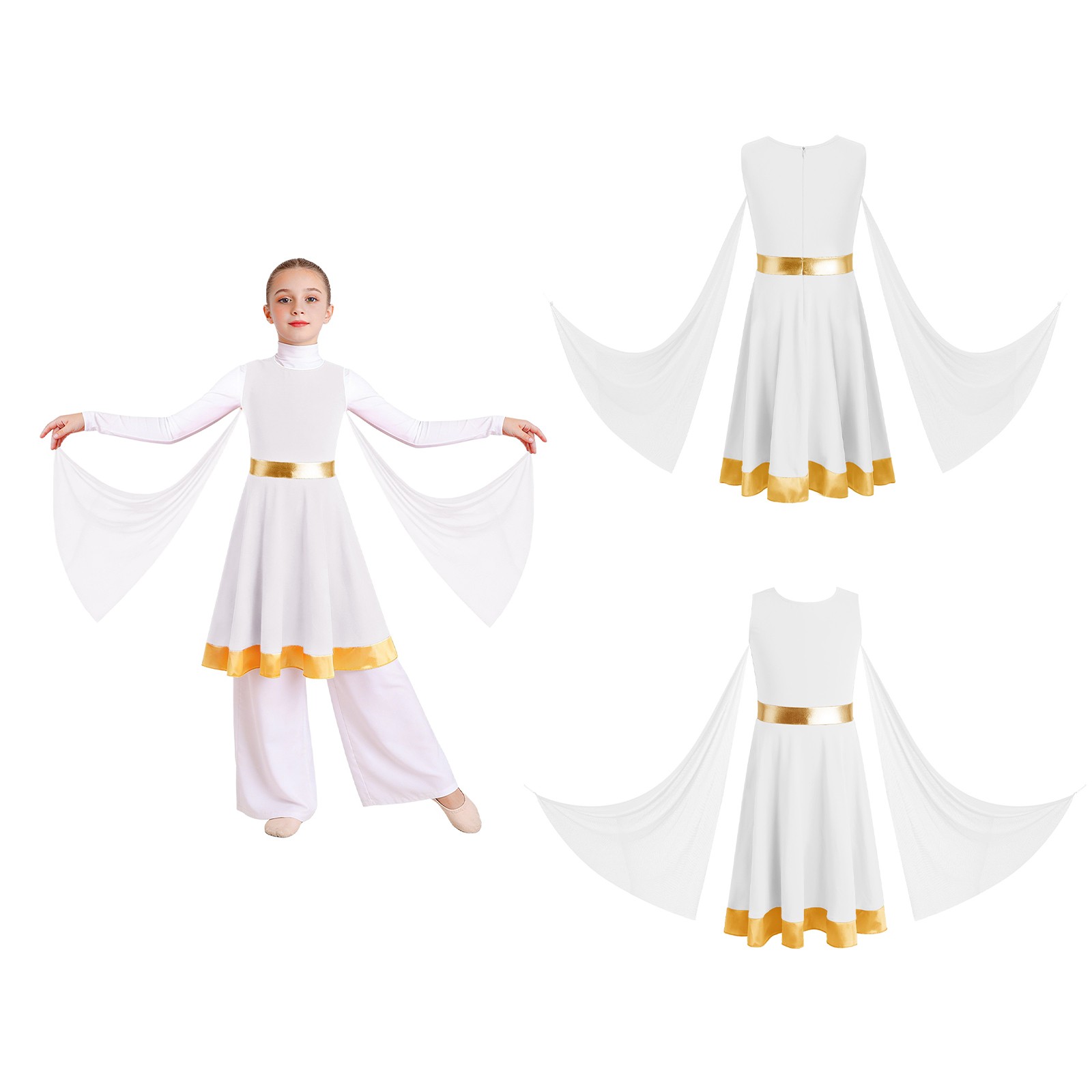 Kids Girls Dress Metallic Costume Sleeveless Robe Festival Praise Cosplay Stage