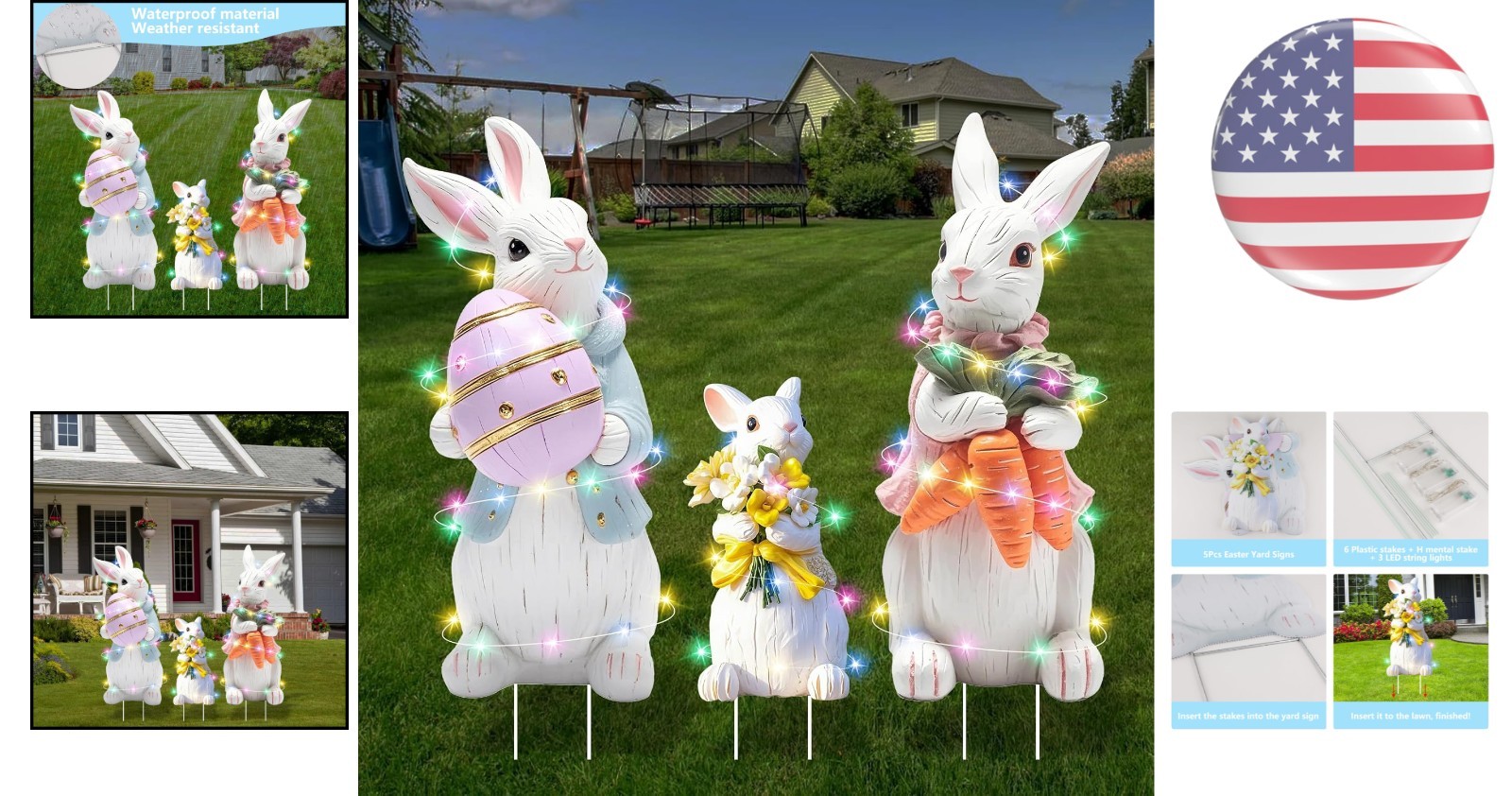 Vivid 5-Piece Easter Yard Decoration Set with LED Lights - Perfect for Parties