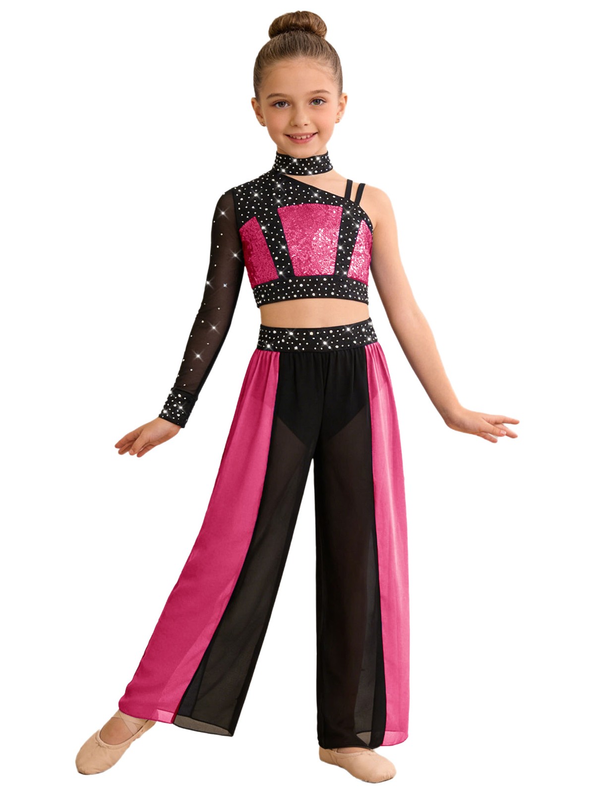 Kids Girls Outfit Leotard Dancewear Dance Costume Ballroom Ruched Modern Rave