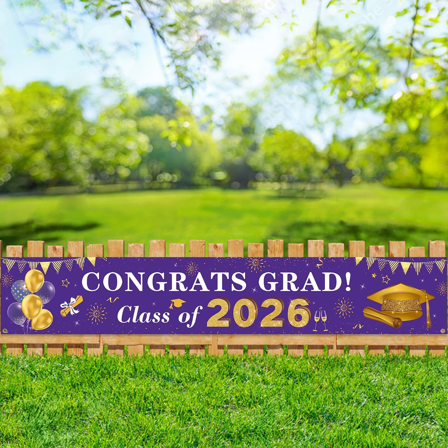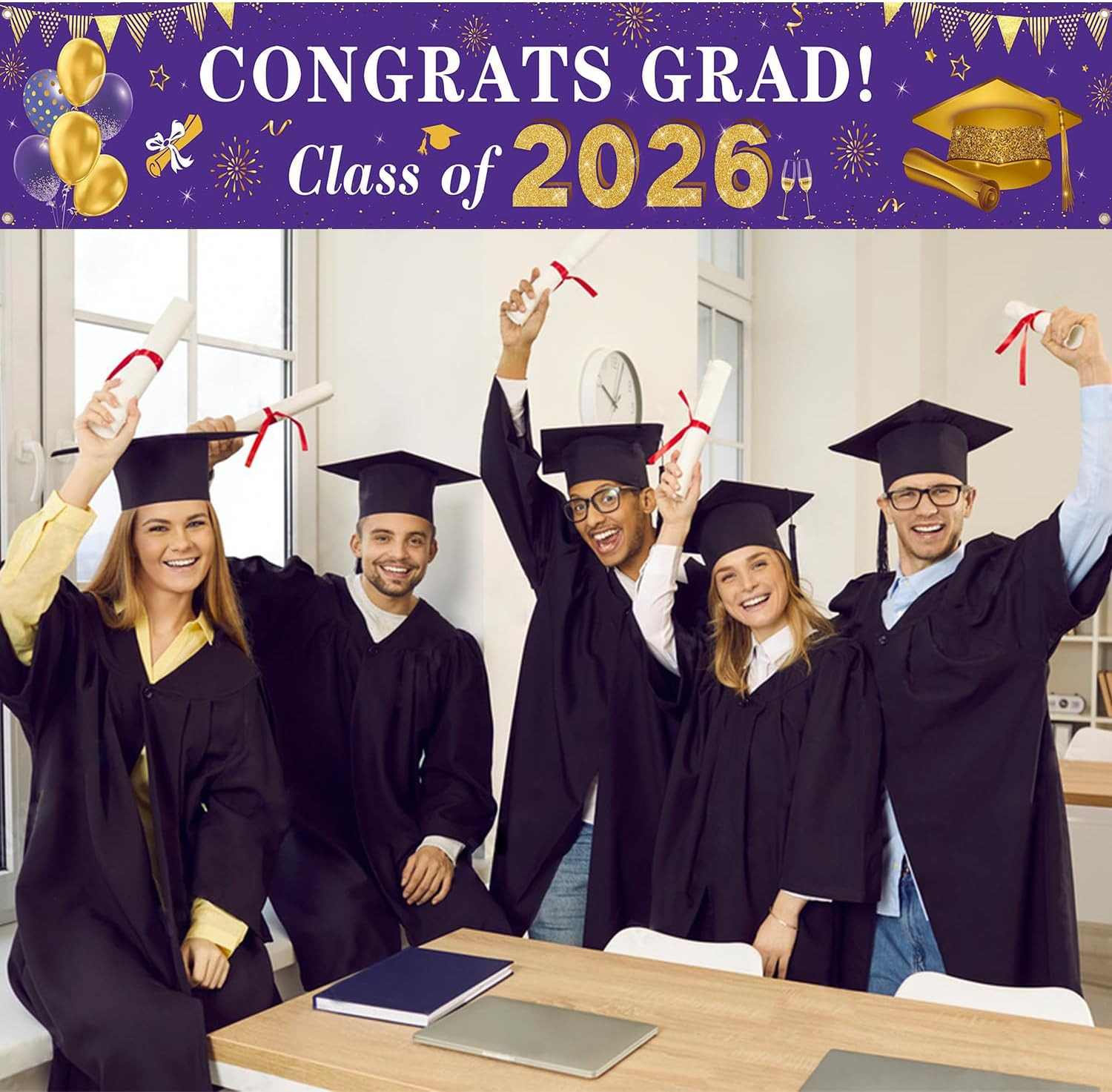 2026 Graduation Decorations Congrats Grad Class of 2026 Banner - Purple and Gold