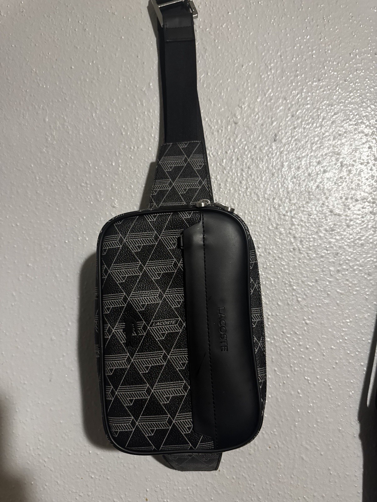 Lacoste Hoodrich Men's Black Crossbody Bags Adjustable Strap Geometric Solid