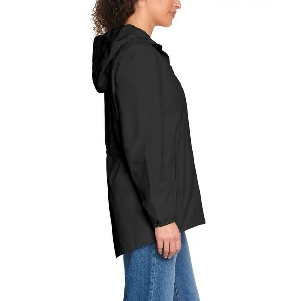 Lands End Women s Black Hooded Rain Jacket With Pouch New With Tags