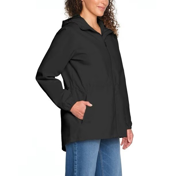 как выглядит Lands End Women s Black Hooded Rain Jacket With Pouch New With Tags фото