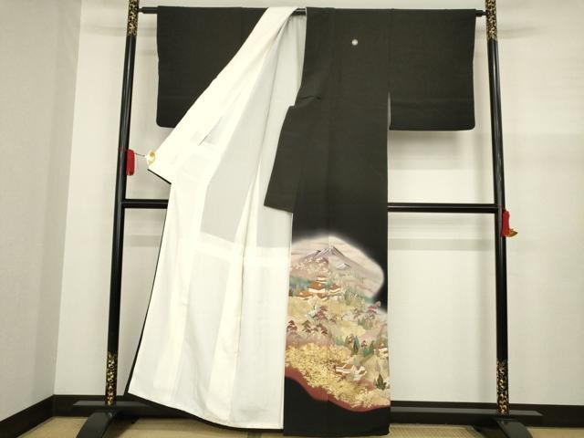 Heiwaya Kimono Luxurious black tomesode landscape pattern halo dyed gold color