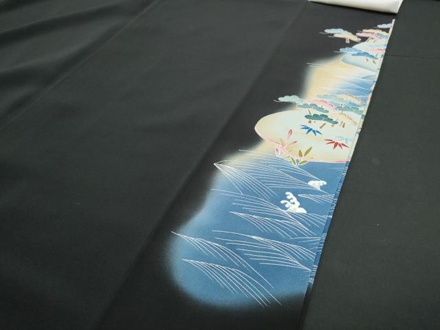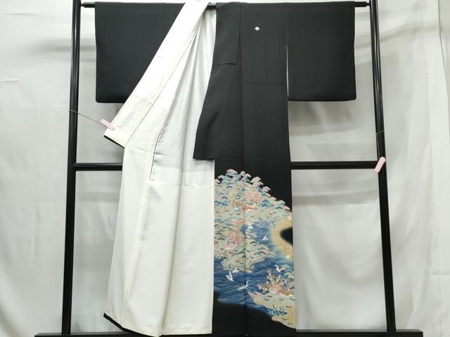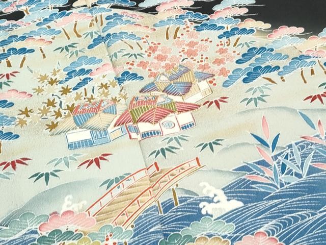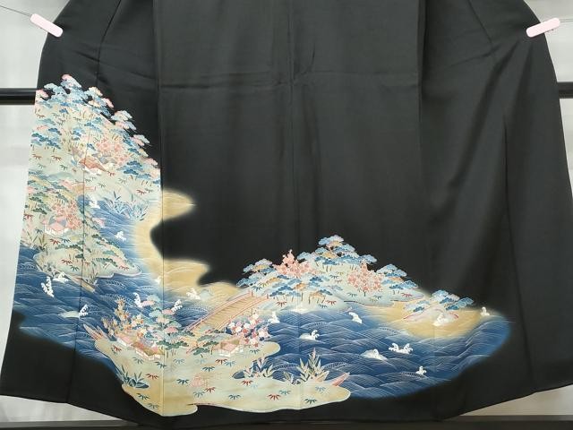 Heiwaya Kimono Luxurious black tomesode landscape pattern halo dyed gold color