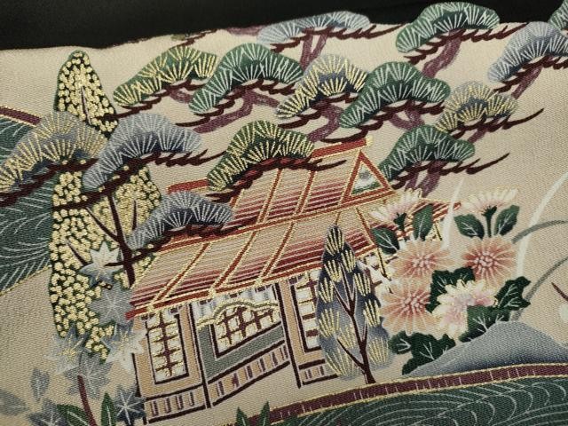Heiwaya Kimono Luxury black tomesode piece embroidery landscape text gold color