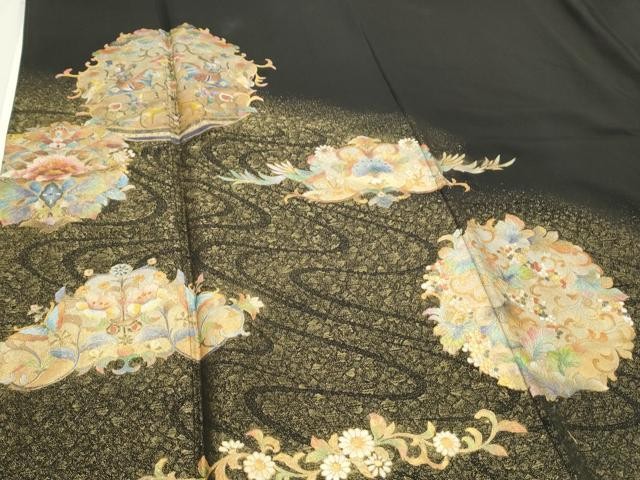 Heiwaya kimono luxurious black tomesode artist's work animal hunting pattern