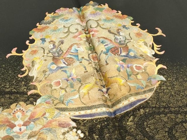 как выглядит Heiwaya kimono luxurious black tomesode artists work animal hunting pattern фото