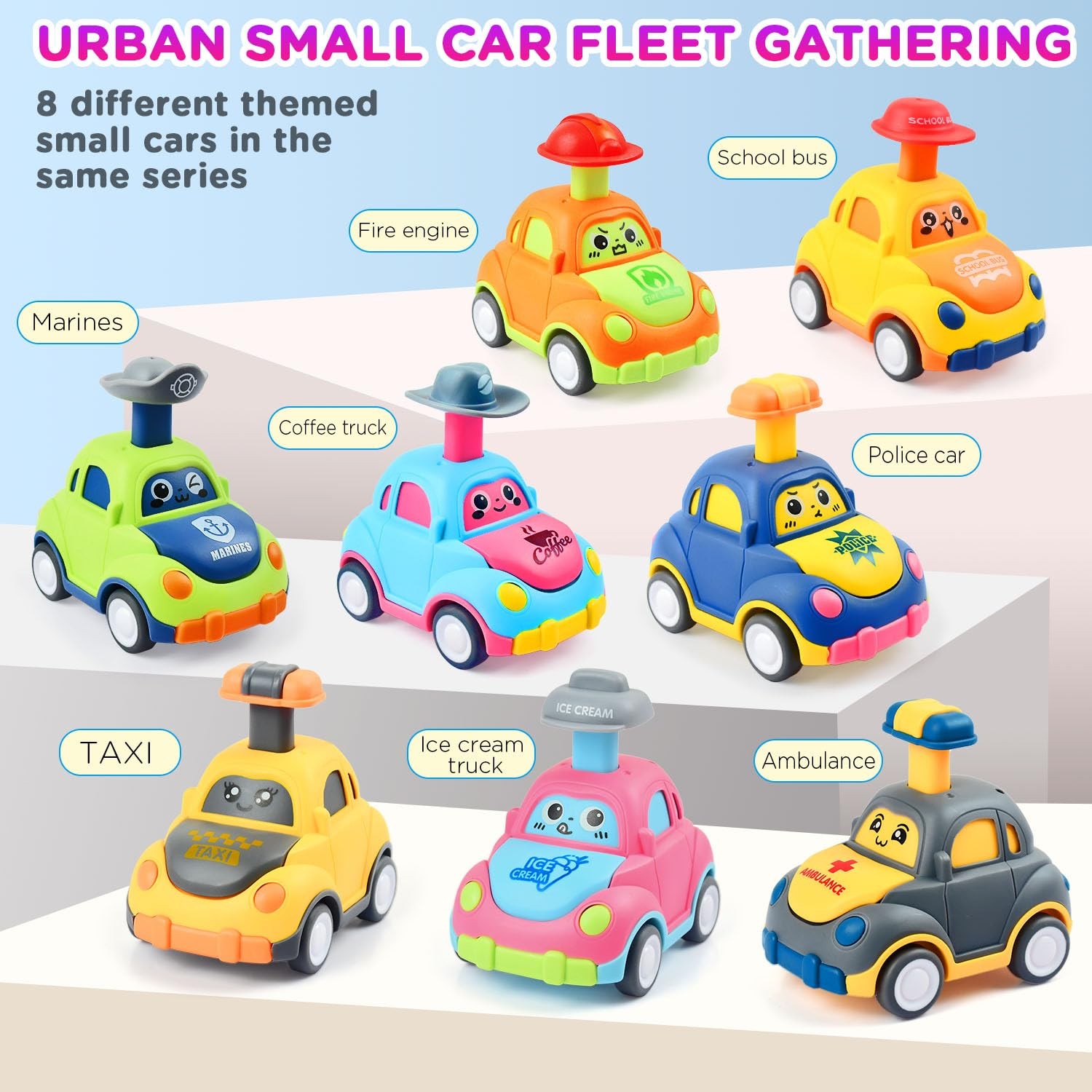 как выглядит 8 Pack Press and Go Car Toys for Toddlers1 2 3 Year Old,Infant Play Vehicle S... фото