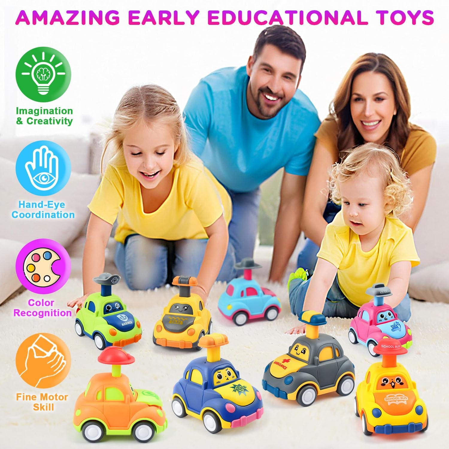 8 Pack Press and Go Car Toys for Toddlers1 2 3 Year Old,Infant Play Vehicle S...