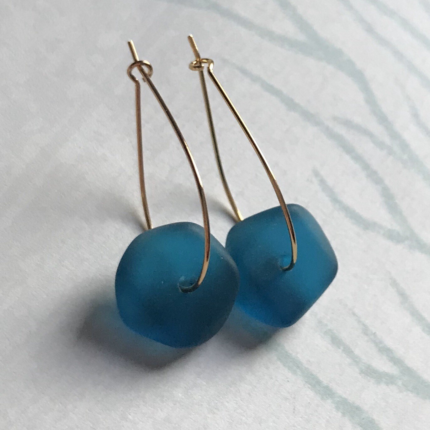 Min Favorit Teal Sea Glass Nugget Gold Pl Artisan Drop Earrings
