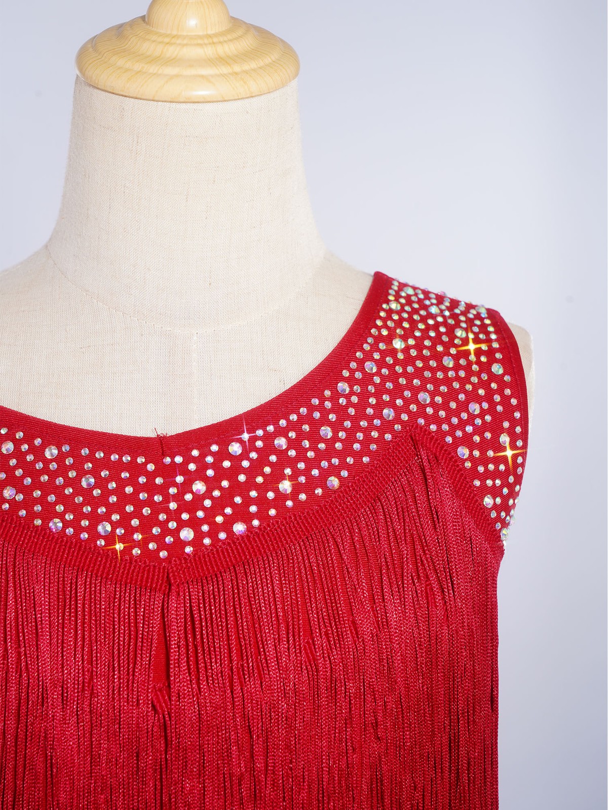 Kids Girls Outfit Cutout Set Dress Tassel Back Dancewear Salsa Ballroom Rumba