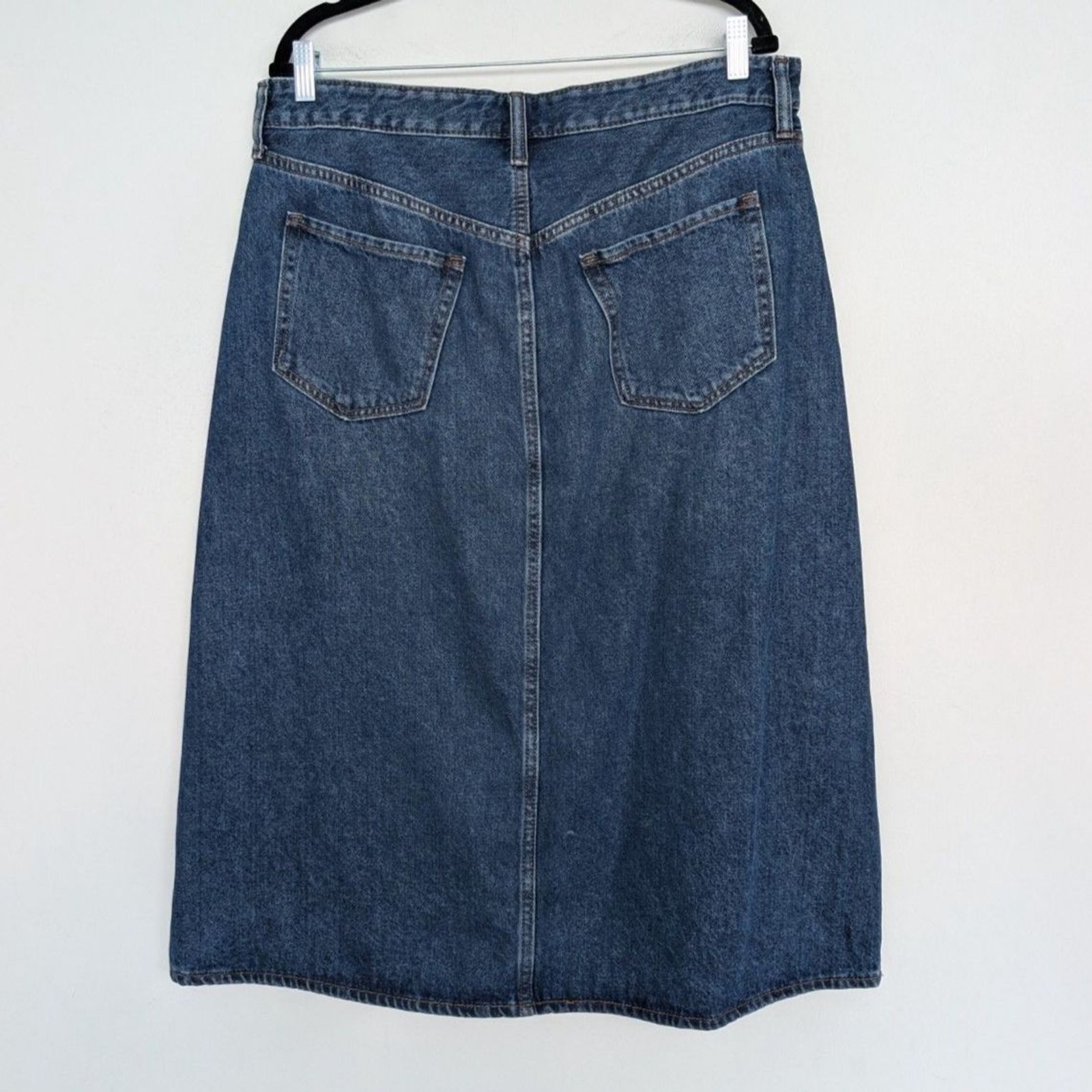 как выглядит EUC Old Navy High Rise Secret Smooth Pockets Denim Jean Blue Midi Skirt Sz 16 фото