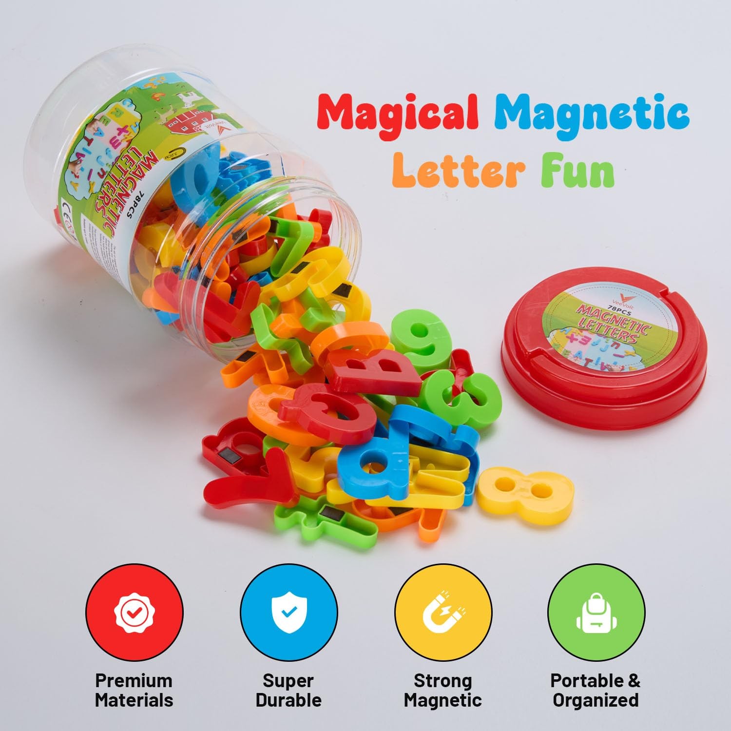 JoyLearn 78 Pieces Magnetic Letters and Numbers Alphabet Fridge All Colors